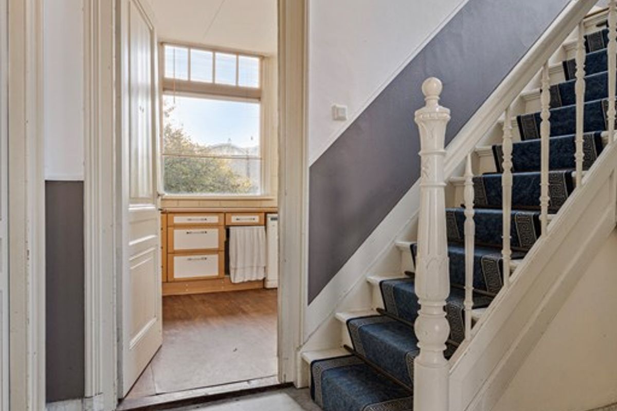 In de lichte, open woonkamer valt het natuurlijke daglicht direct op, dankzij de royale raampartijen aan zowel de voor- als achterkant. Deze ruimte nodigt uit om een comfortabele zithoek en een royale eethoek te creëren. Karakteristieke elementen zoals een charmante schouw, sierlijke ornamenten en een warme houten vloer geven de woonkamer een sfeervolle uitstraling. Met enige modernisering kan deze ruimte weer een eigentijdse look en feel krijgen, perfect passend bij uw eigen woonwensen.