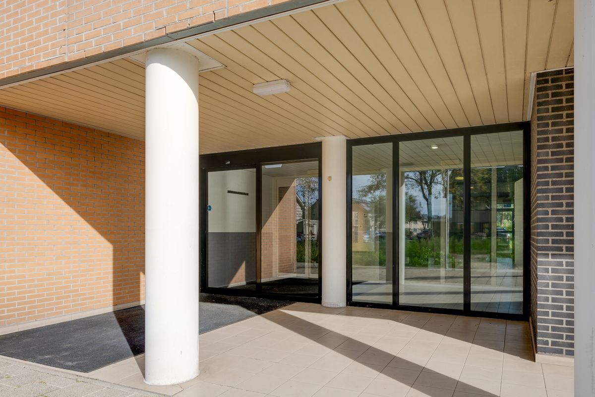 Gemeenschappelijke entree met video-intercomsysteem, brievenbussen, lift en trappenhuis. Hier bevindt zich tevens de eigen berging. Achter het gebouw ligt het afgesloten parkeerterrein van de VvE, waar bewoners gratis kunnen parkeren. Dit terrein is met een op afstand bedienbare slagboom afgesloten van de openbare weg. Bezoek kan zoals eerder aangegeven gratis parkeren op een van de vele plekken in de omgeving.