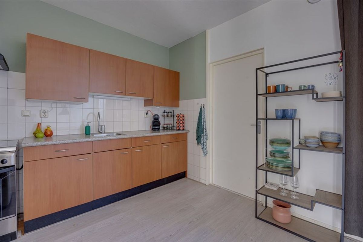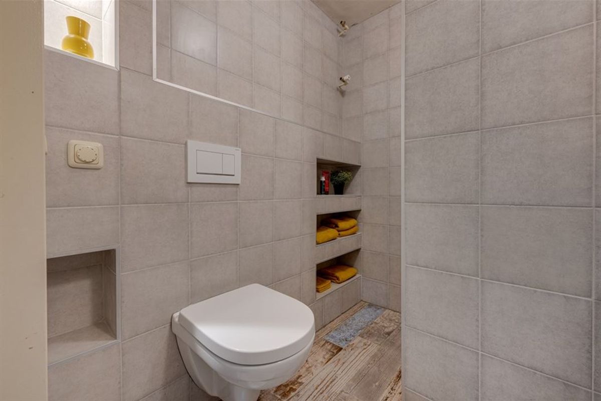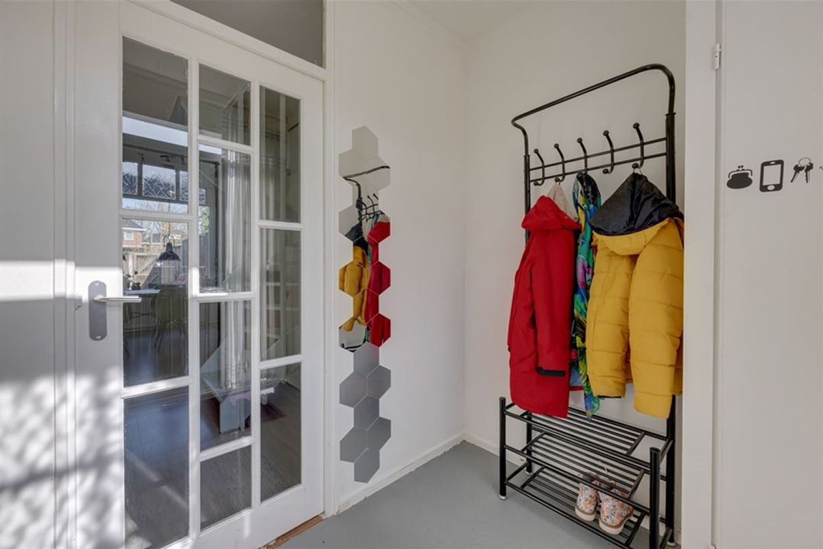 Achter de keuken bevindt zich een tussenhal met toilet, toegang tot de achtertuin en de bijkeuken met witgoedaansluiting.