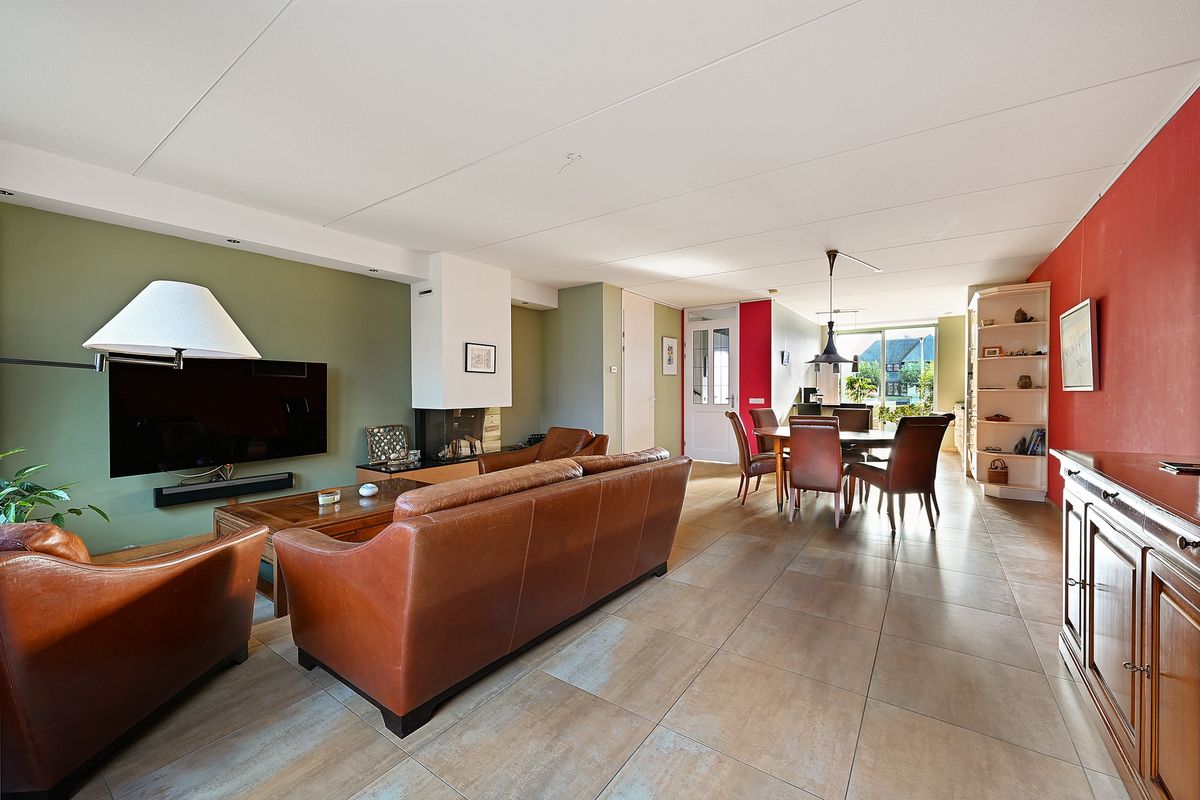 De tuingerichte woonkamer is voorzien van vloerverwarming en biedt door de grote raampartijen een fijne lichtinval. Openslaande deur (en) geven toegang tot de zonnige achtertuin op het westen, waar u in de middag en avond heerlijk van de zon kunt genieten. Verder is er een grote voorraadkast aanwezig en het fraaie wandmeubel met ingebouwde gashaard maakt het geheel compleet.