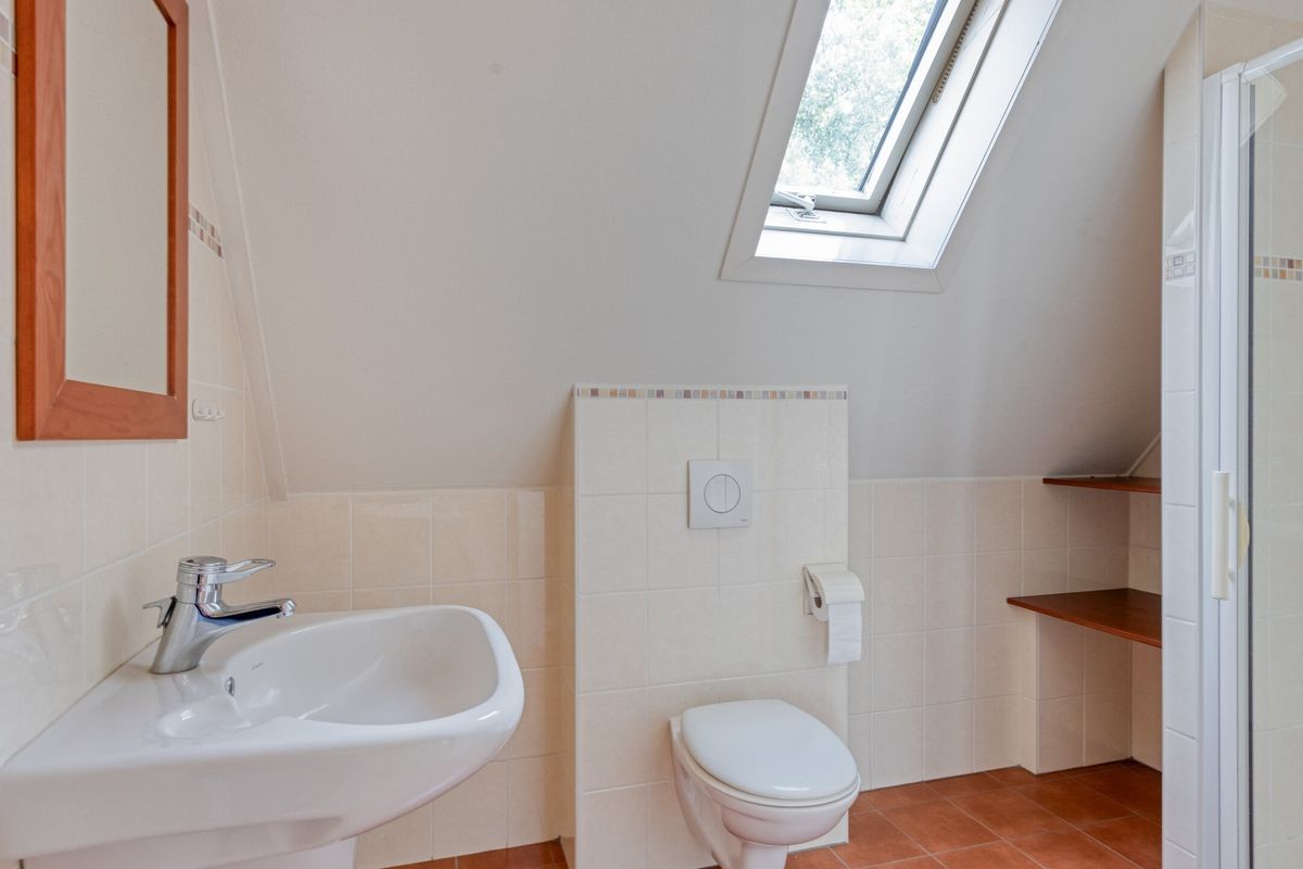 Eerste verdieping: Hier bevindt zich de overloop met toegang naar 3 slaapkamers en een badkamer voorzien van douche cabine, wastafel en 2e toilet.