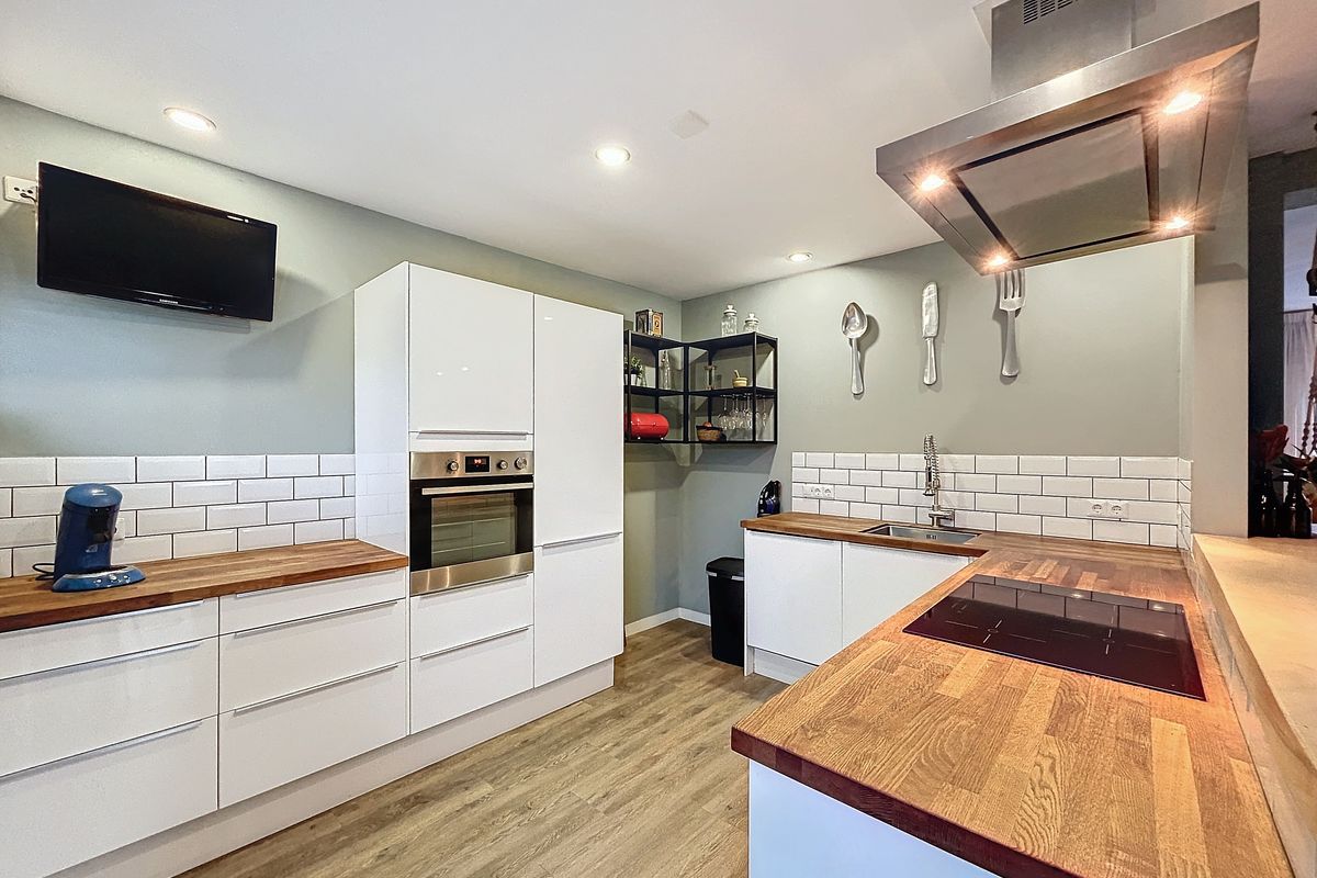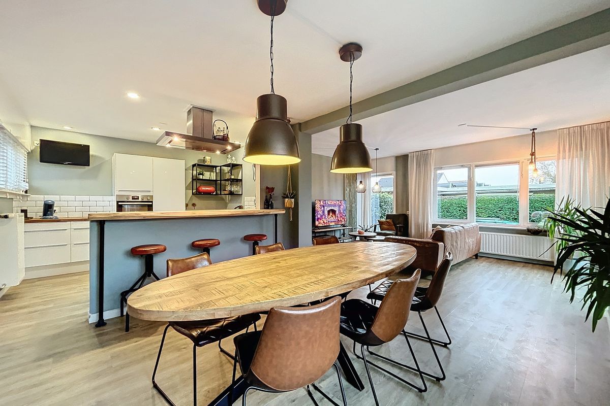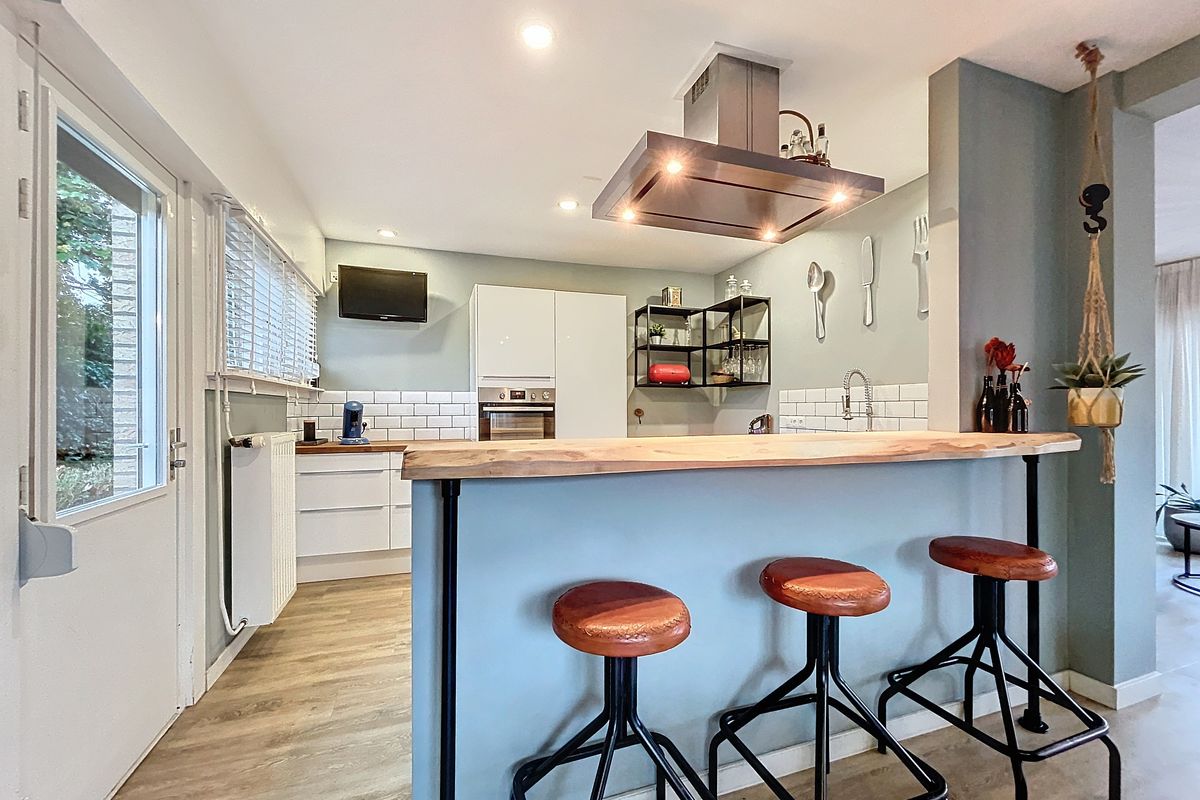 Vervolgens lopen we langs het huis naar de voordeur om de ruime inkomhal te betreden. Deze hal biedt alle ruimte voor een garderobe en biedt toegang tot de verdieping en de gang. De gang biedt toegang tot alle ruimtes op de begane grond. Aan de rechterzijde treffen we eerst de twee slaapkamers aan. Beiden zijn ruim genoeg voor een tweepersoonsbed en een kledingkast. Eventueel is ook één van de twee te gebruiken als kantoor, voor een beroep aan huis of als hobbyruimte. Rechtdoor treffen we het aparte toilet en de vernieuwde badkamer aan. De badkamer is voorzien van een fijne inloopdouche, een heerlijk ligbad en een wastafel met meubel. Tenslotte betreden we aan de linkerzijde de royale woonkamer met open keuken. De vele raampartijen rondom zorgen voor zeer veel lichtinval en daarnaast is er tevens een schuifpui voorzien. Hier heb je alle ruimte voor een gezellige zithoek en een lange eettafel, waarbij de ruimte sfeervol verwarmd wordt met de ingebouwde pelletkachel. In de keuken kan je heerlijk ontbijten of borrelen met je vrienden aan de bar wanneer je aan het koken bent. Dit is gerealiseerd dankzij het openbreken van de keuken in 2018. Koken doe je op de inductie kookplaat en verder is de keuken voorzien van een vaatwasser, een boiler, een koel- en vrieskast, een stoomoven en een combioven. De begane grond is een betonvloer met een PVC-vloer als afwerking en de muren zijn vrijwel allemaal opnieuw gestuct.