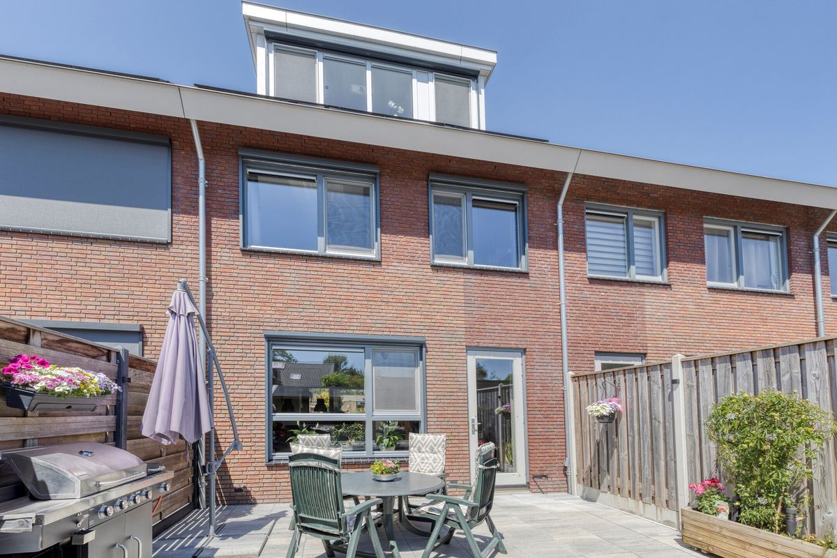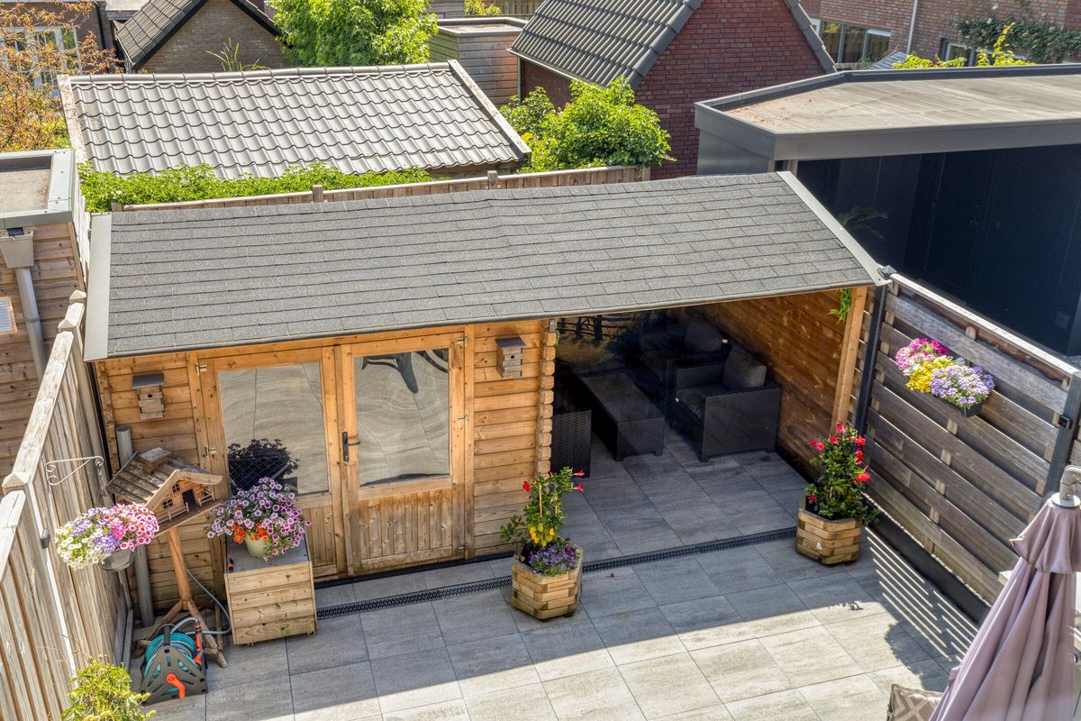 Een zonnige en onderhoudsarme achtertuin vormt een verlengstuk van de woonkamer. Via de tuindeur stapt u zo het terras op, waar meer dan genoeg ruimte is voor een buitentafel of een loungehoek. De tuin is grotendeels bestraat, wat het onderhoud vergemakkelijkt, en biedt vele zonuren. Achterin de tuin vindt u een praktische berging met overkapping – ideaal voor het stallen van fietsen of het creëren van een gezellige buitenplek, zelfs bij minder goed weer.