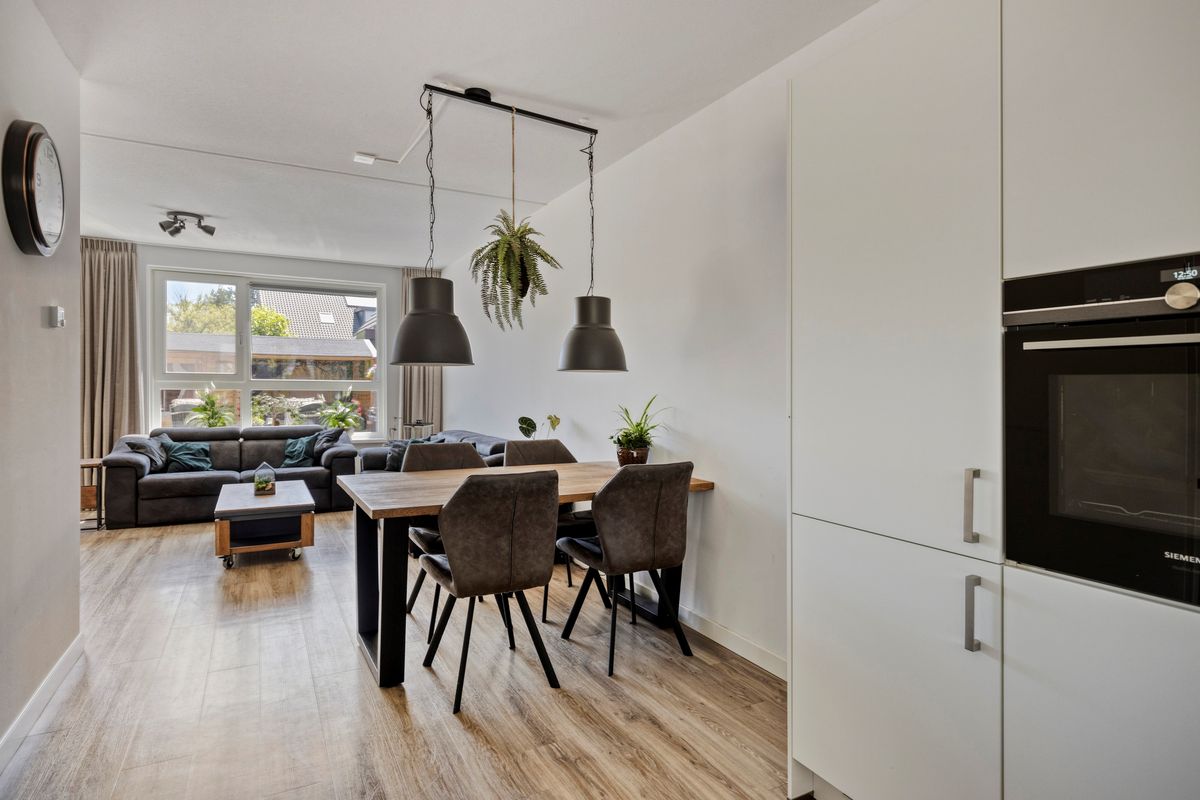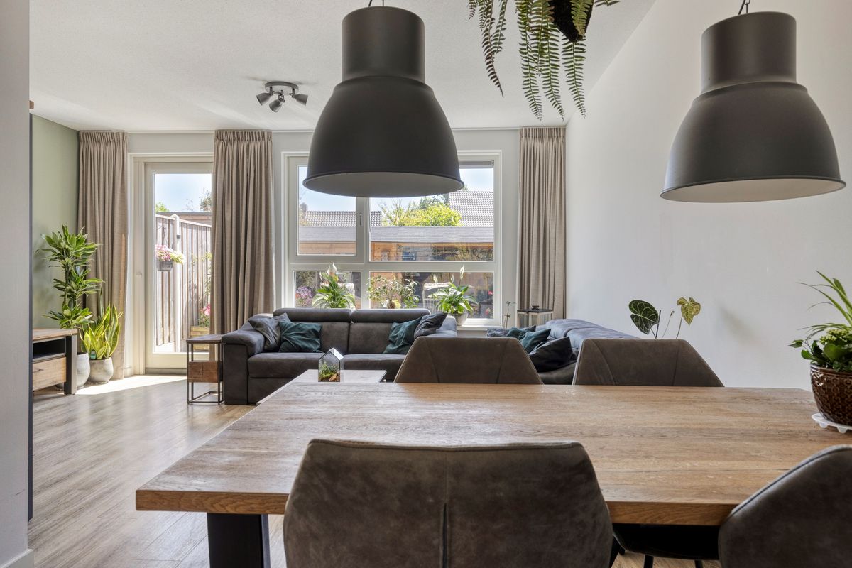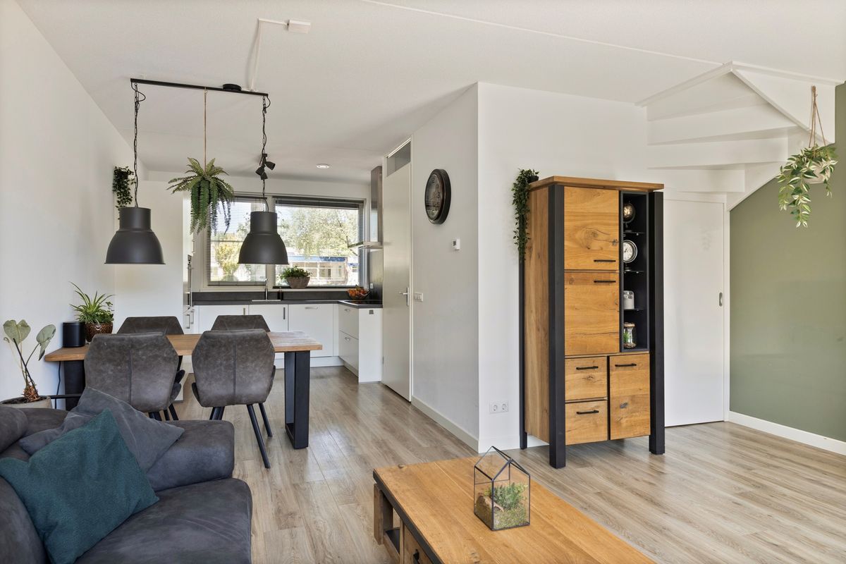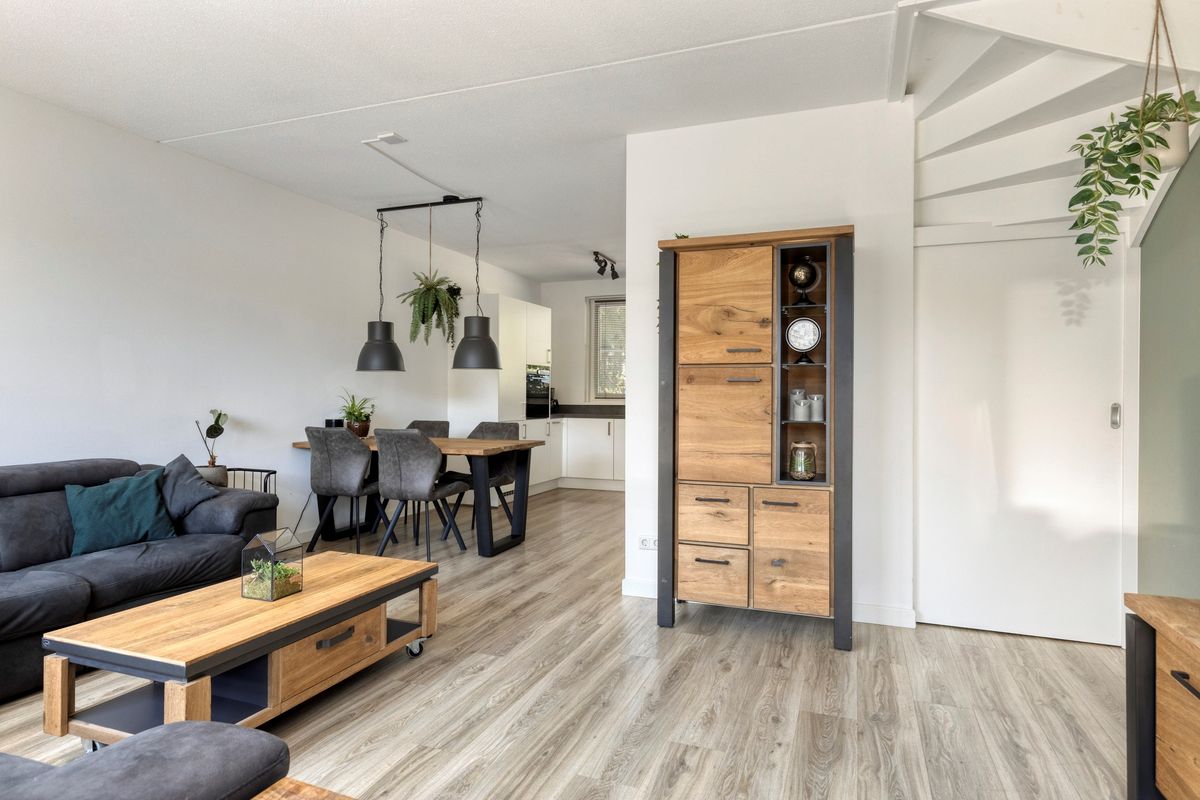 De woonkamer voelt dankzij de grote raampartijen licht en open aan, met veel ruimte voor het inrichten van een comfortabele zithoek en een gezellige eethoek. De overvloed aan daglicht laat de ruimte nog groter aanvoelen en creëert een aangename woonbeleving. Een handige trapkast biedt extra opbergruimte en via de tuindeur bereikt u moeiteloos het zonnige terras aan de achterzijde.