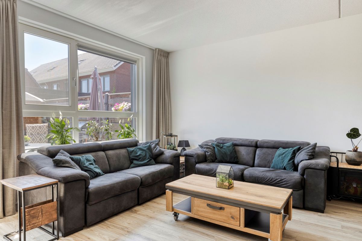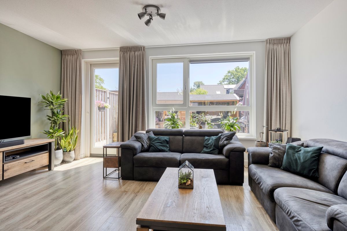 Ruime en lichte woonkamer met tuindeur en trapkast