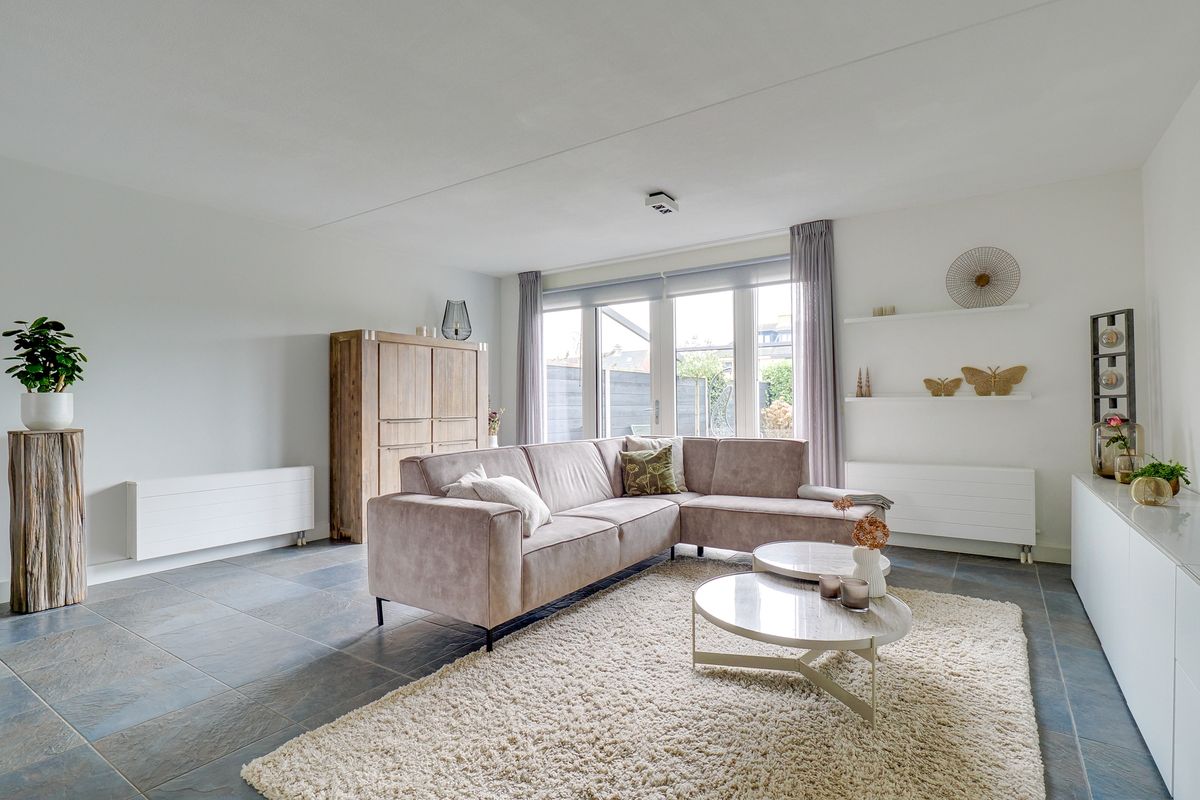 Bij binnenkomst betreed je de hal met een handige garderobe, meterkast, een modern toilet en een trap naar de verdieping. Tevens is er een doorgang naar de garage. De woonkamer is ruim en heeft een gezellig zitgedeelte en met openslaande deuren biedt dit een prachtig uitzicht op de tuin en zorgt voor een mooi lichtinval. Op de vloer ligt een stenen vloer (natuurstenen look) met vloerverwarming. De recent nieuwe open keuken straalt alle luxe en comfort uit en is uitgerust met een modern groot keukenblok met bar. Ook hier vind je diverse inbouwapparatuur zoals o.a. inductiekookplaat, afwasmachine, combimagnetron, koelkast, die het koken nog leuker maakt. Een ideale plek om te genieten van culinaire creaties en gezellige diners!