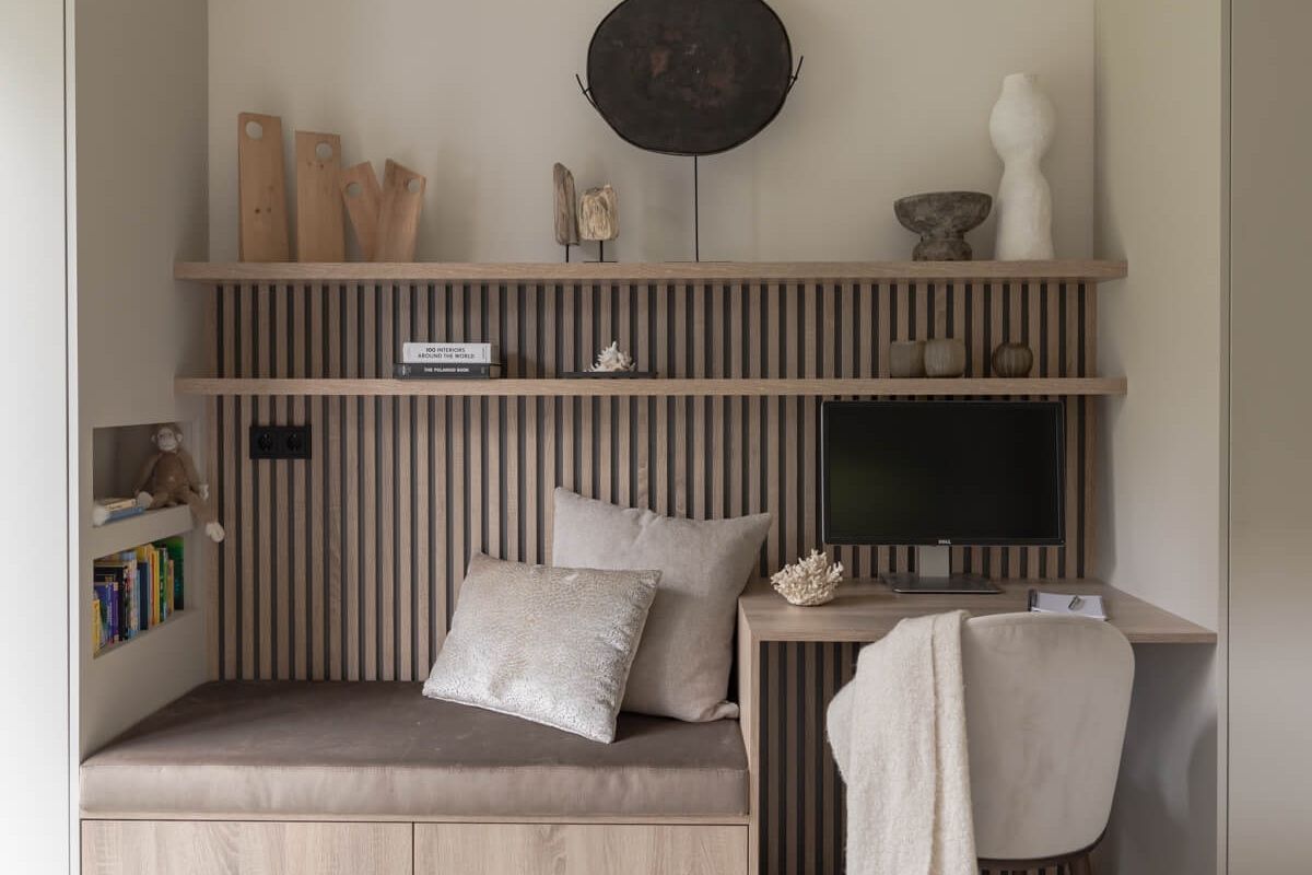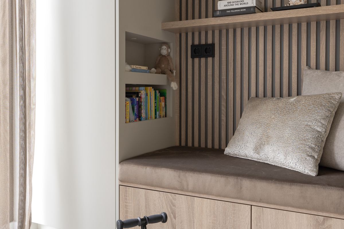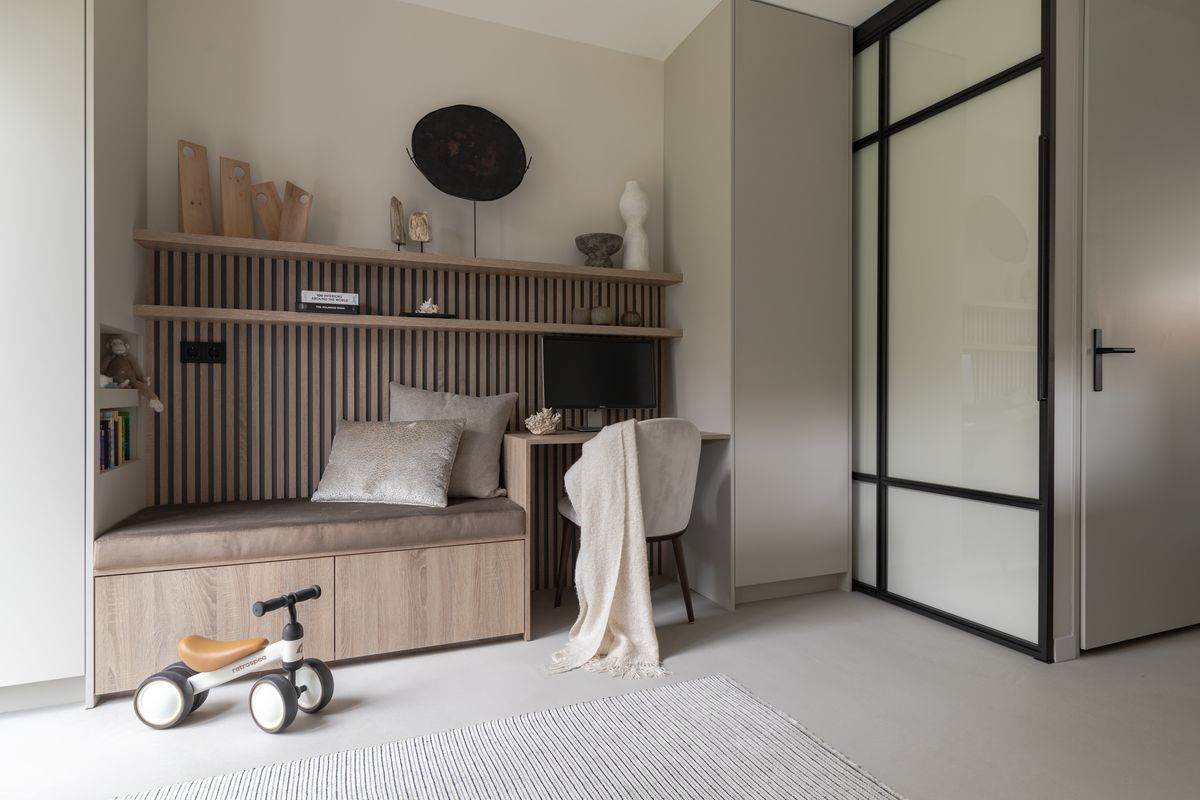 Upon entering the spacious hallway, you immediately notice the high-quality finish. Here you will find the modern guest toilet and access to the generous living room. The front section of the living room is perfect as a children’s play area or a quiet home office. The rear section serves as the main living space, offering a warm and inviting atmosphere.
