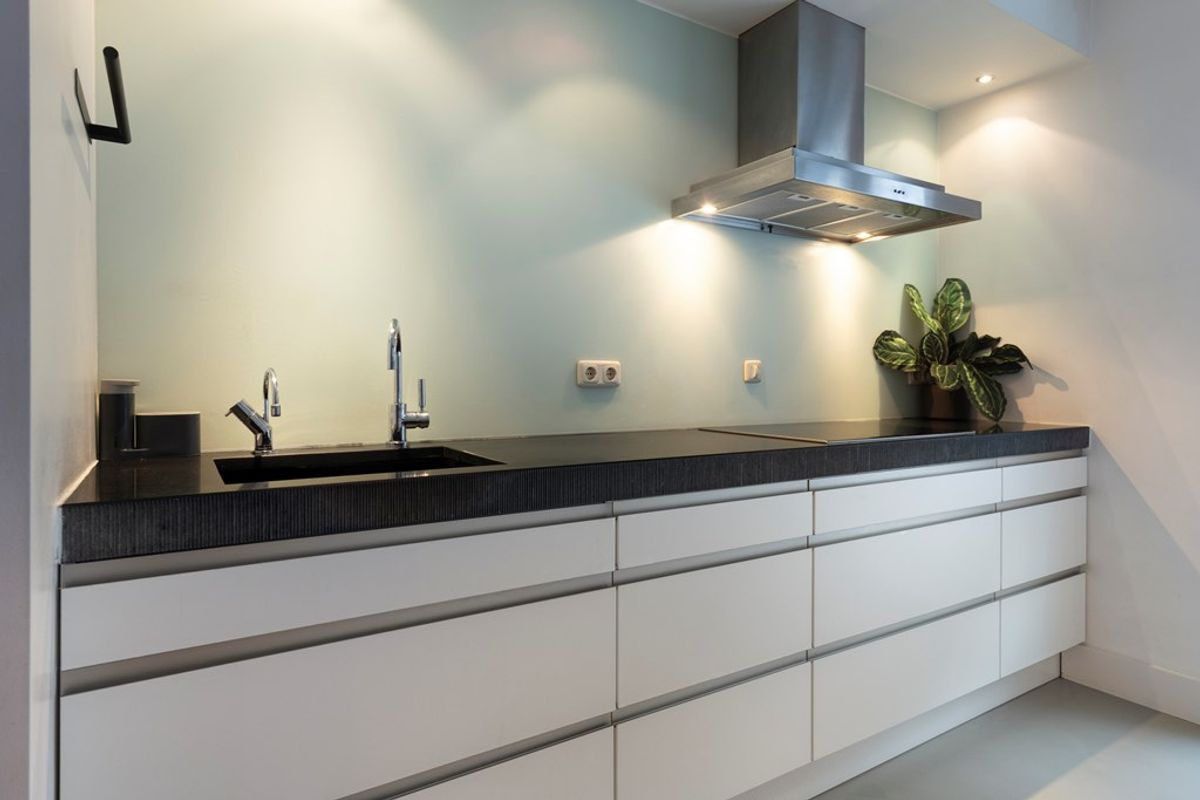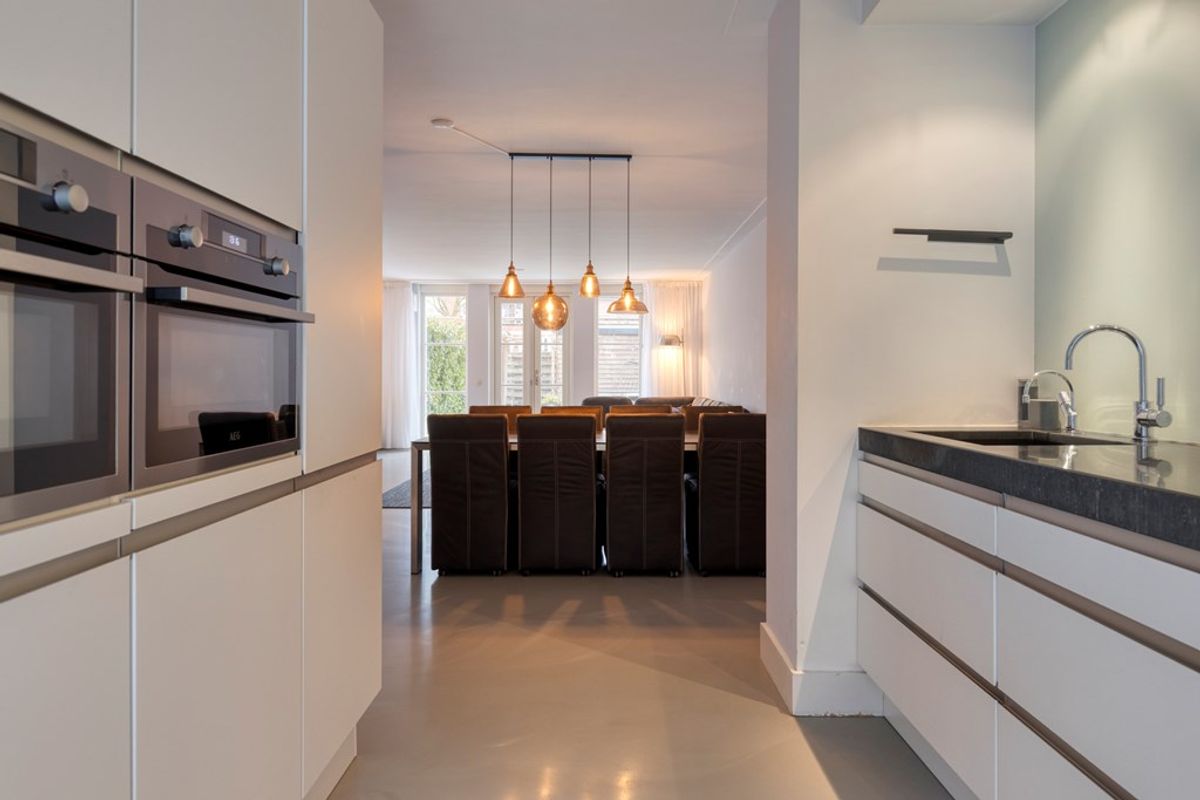 Aan de voorzijde bevindt zich de vernieuwde keuken, uitgerust met diverse luxe inbouwapparatuur van gerenommeerde merken zoals Bosch, AEG en Liebherr. De keuken beschikt onder andere over een Quooker, vaatwasser, inductiekookplaat, afzuigkap, koel-vriescombinatie, combimagnetrons en sfeervolle inbouwspotjes.