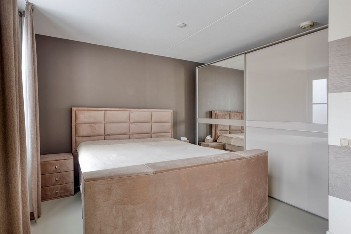 Op de overloop heeft u toegang tot alle vertrekken. De verdieping beschikt over twee ruime slaapkamers, één aan de achterzijde en één aan de voorzijde van de woning. Daarnaast treft u hier de moderne badkamer, volledig betegeld en uitgevoerd in een strakke, luxe stijl. De badkamer is voorzien van een inloopdouche met regen- en handdouche, een dubbel wastafelmeubel en een tweede toilet.