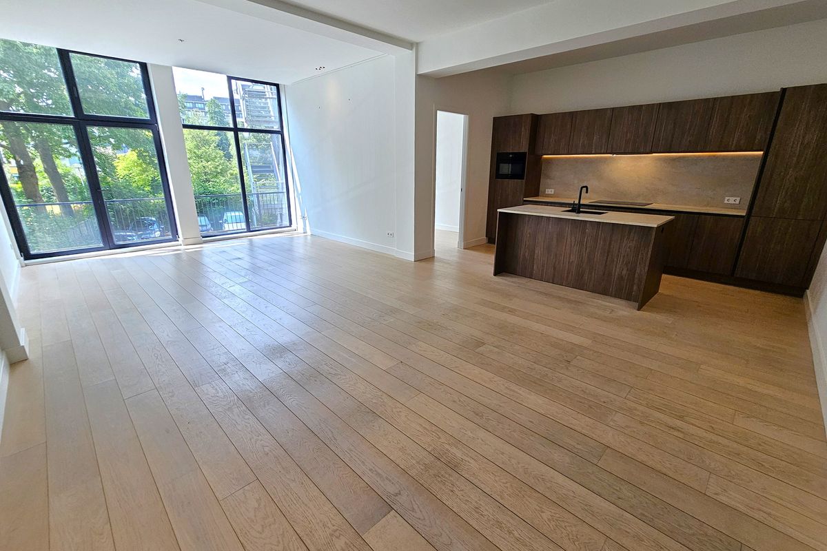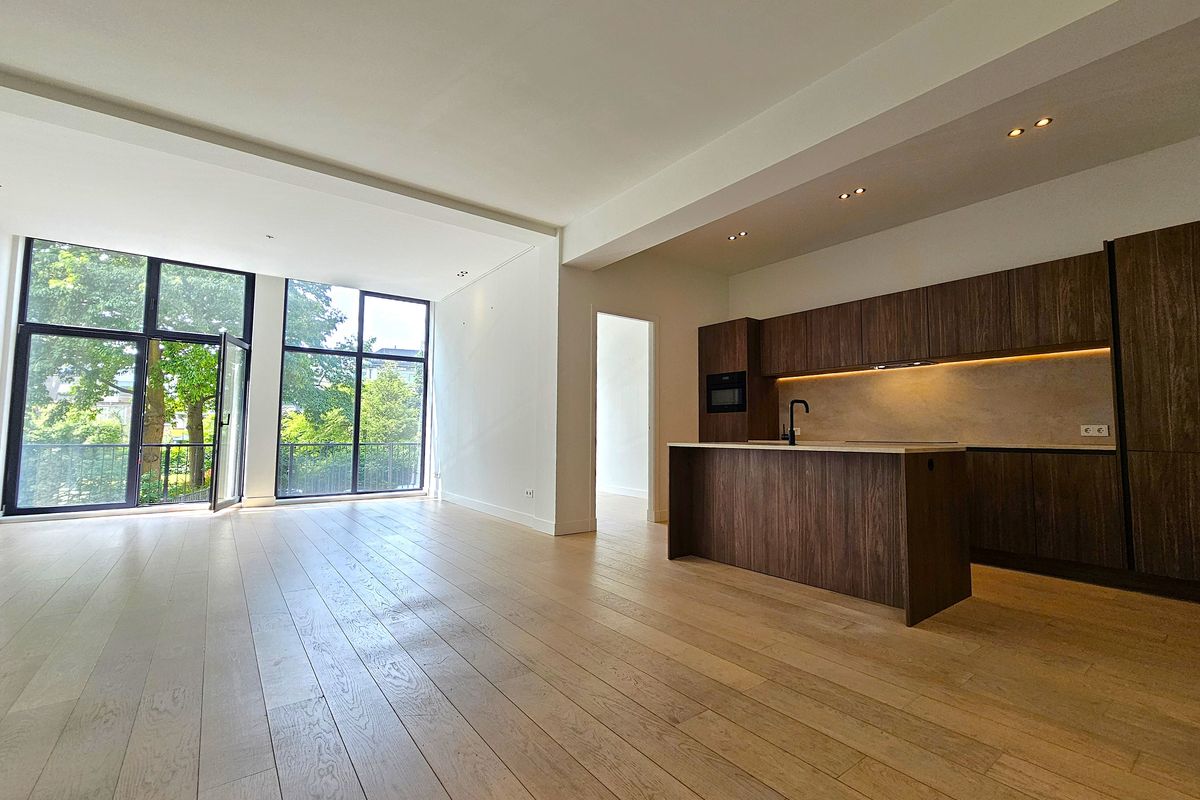 Een lichte, ruime woonkamer met open keuken van maar liefst 50 m², perfect om te ontspannen of gasten te ontvangen. Via de schuifpui stap je zo het zonnige balkon op van ca. 10 m².