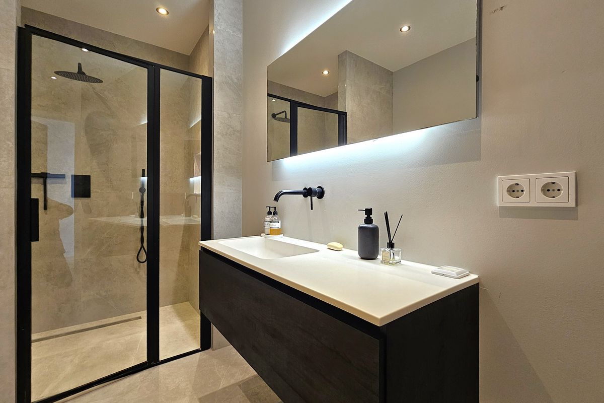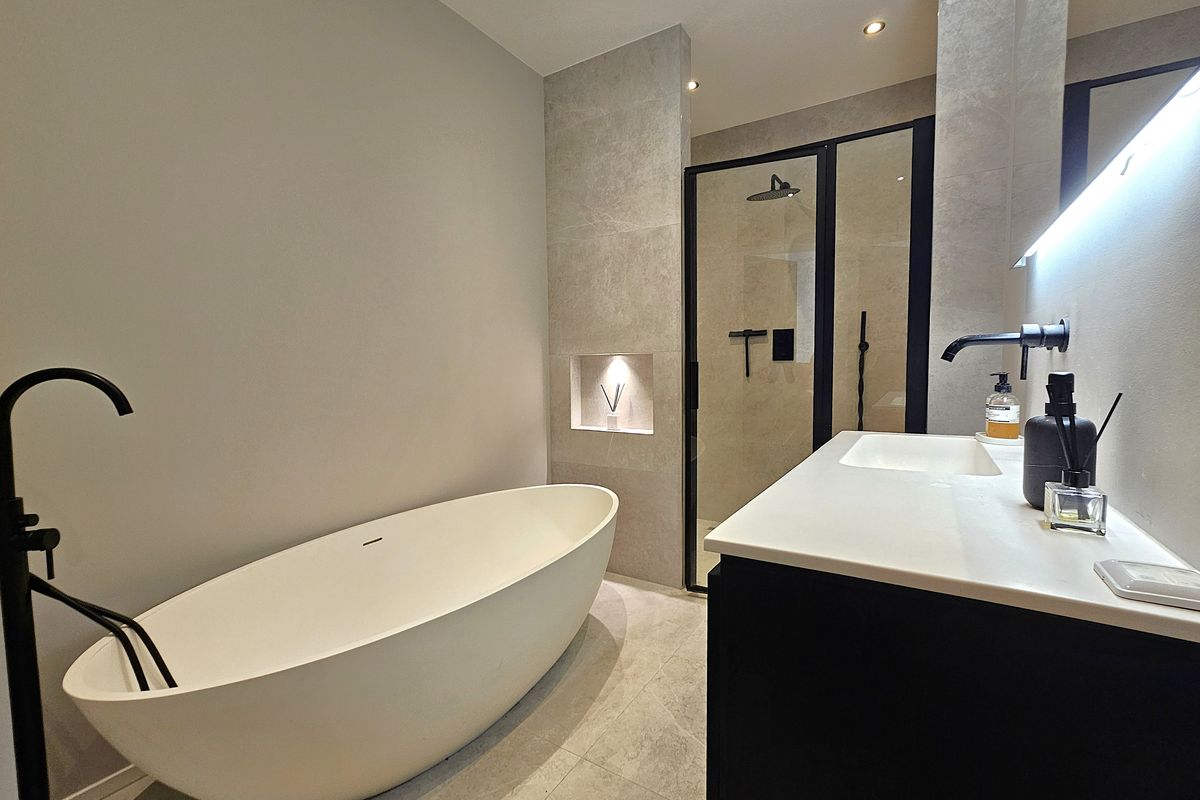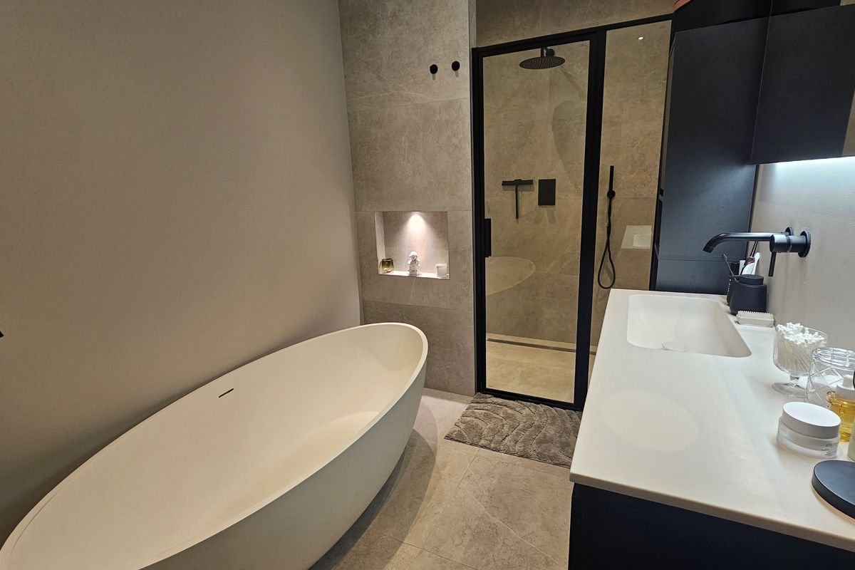 De open keuken is een droom voor elke kookliefhebber: strak design, diepe lades en topapparatuur zoals een inductiekookplaat, combi-oven en vaatwasser. De badkamer voelt als een privéspa met een inloopregendouche, design ligbad en dubbele wastafel.