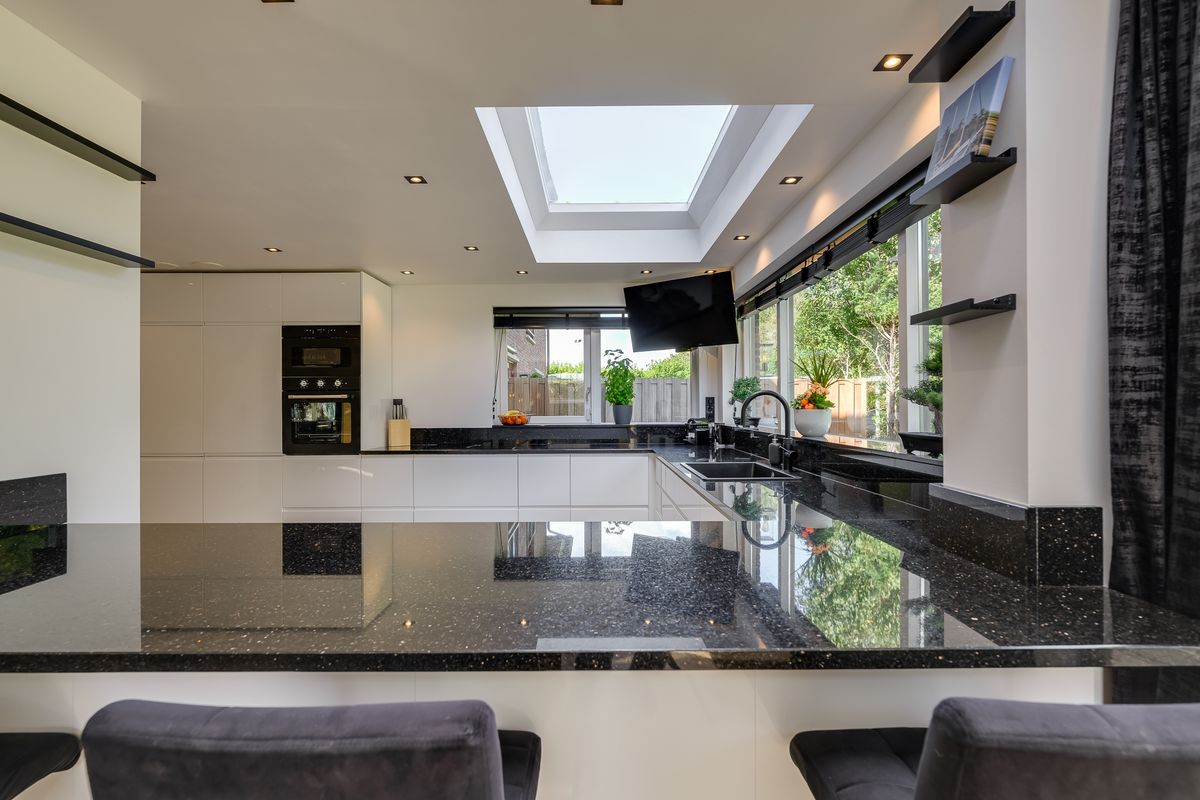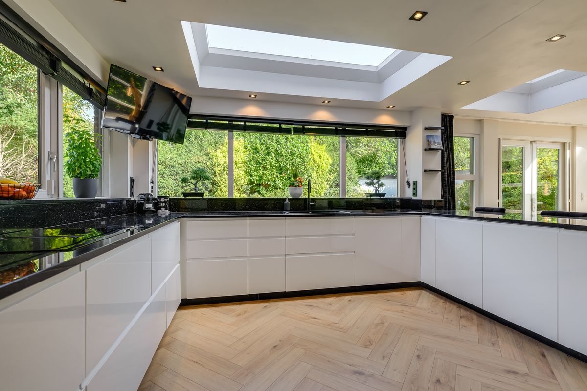 Luxury kitchen with two refrigerators, freezer, quooker, induction hob, oven, microwave and dishwasher