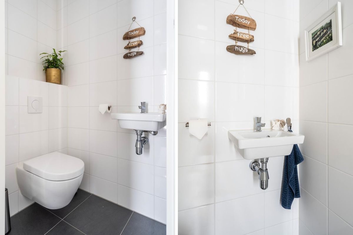 Vanaf de overloop bereikt u twee ruime slaapkamers, inloopkast, wasruimte en badkamer. De volledig betegelde badkamer is strak afgewerkt met wastafel met meubel, inloopdouche en toilet.