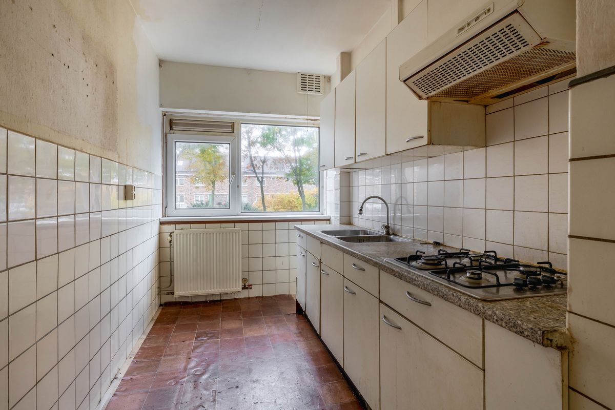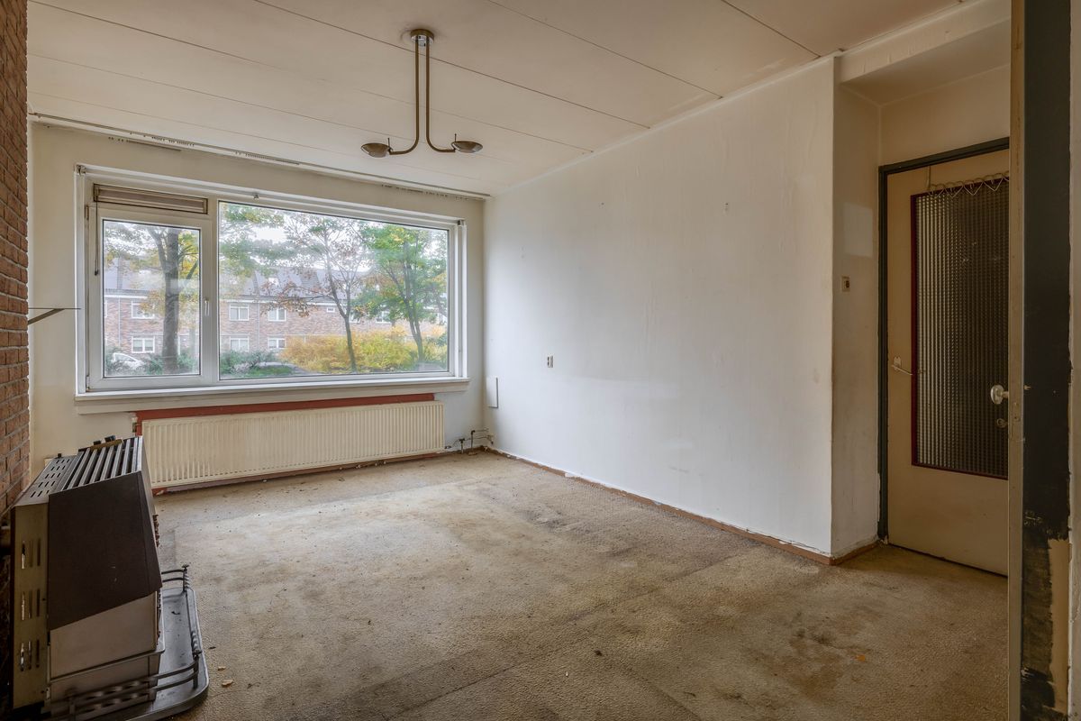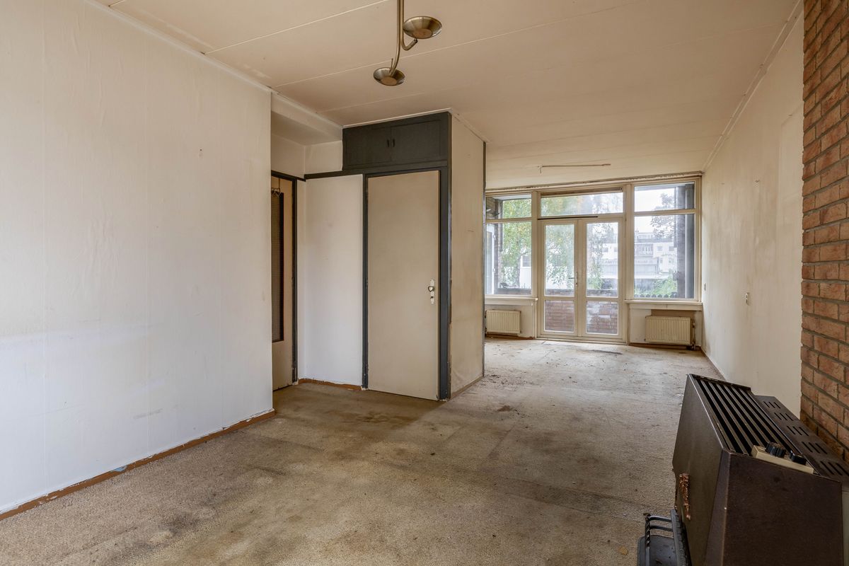 Deze benedenwoning biedt een verrassend ruime opzet met veel mogelijkheden voor wie bereid is de handen uit de mouwen te steken. De woning beschikt over een royale woonkamer met grote raampartijen die zorgen voor veel lichtinval. Aan de voorzijde bevindt zich de gesloten keuken, en centraal in de woning zijn de entree, het toilet en de badkamer te vinden. Aan de achterzijde bevindt zich de slaapkamer, met directe toegang tot het balkon.