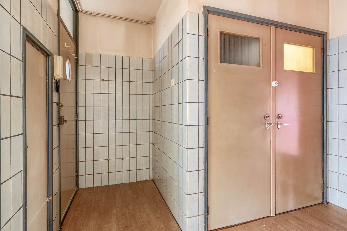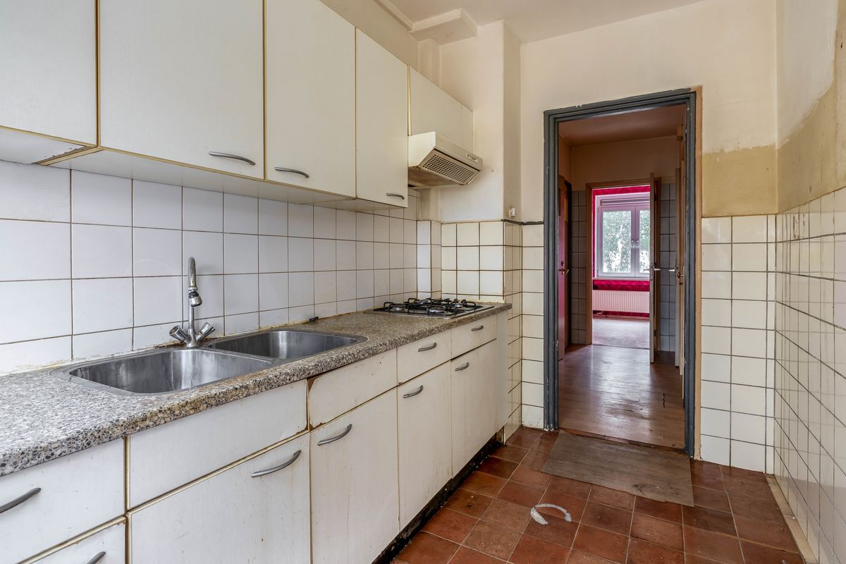 This ground floor apartment offers a surprisingly spacious layout with plenty of possibilities for those ready to roll up their sleeves. The property features a generous living room with large windows that allow for plenty of natural light. At the front of the home, you'll find a separate kitchen, while the entrance hall, toilet, and bathroom are centrally located. At the rear, the bedroom offers direct access to the balcony.