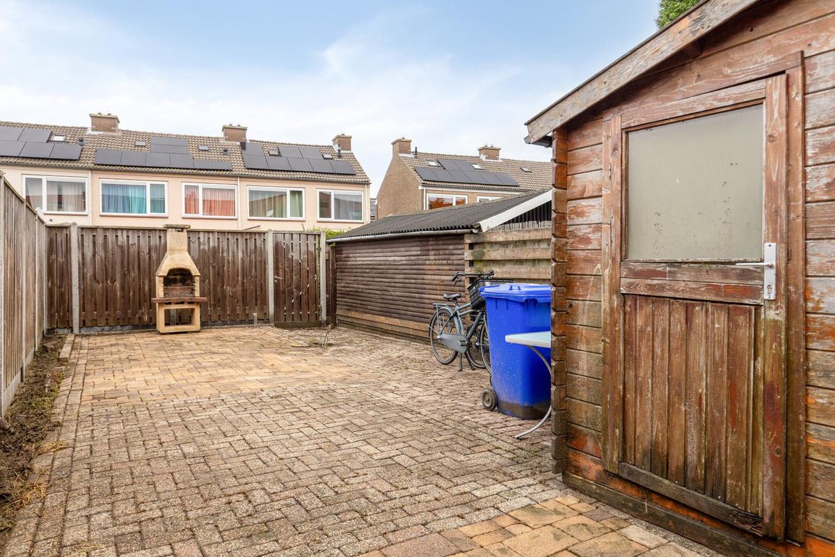 De achtertuin is onderhoudsvriendelijk aangelegd en gelegen op het noordoosten, waardoor je vooral in de ochtend en vroege middag kunt genieten van de zon. Achterin de tuin staat een praktische berging, ideaal voor fietsen of tuingereedschap, en via de achterom bereik je eenvoudig de straatzijde. De tuin is een fijne, beschutte buitenruimte waar je heerlijk kunt ontspannen.