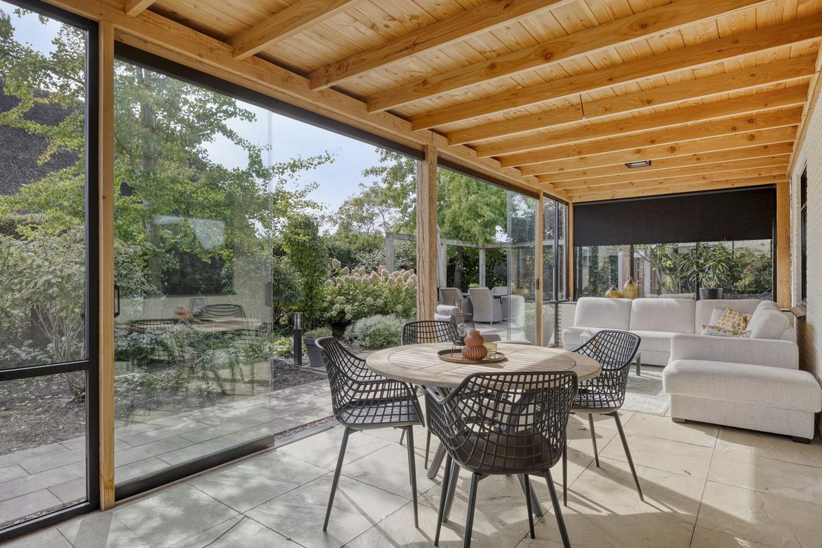 - Aan de achterzijde is een luxe serre aangebouwd.
