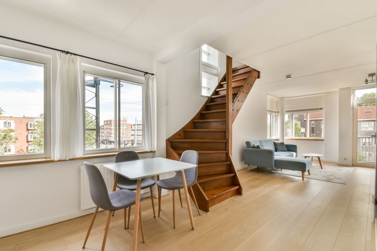 New for Sale: Spacious and Well-Maintained 3-Room Maisonette with 2 Bedrooms, 2 Balconies and private storage in the Popular De Baarsjes area, in Amsterdam. The apartment is spread across the top floors (3rd and 4th) and has unobstructed views over the Postjeskade, and a perfect location near the Vondelpark (800 m) and Rembrandtpark (300 m), combining comfort with a vibrant urban environment.