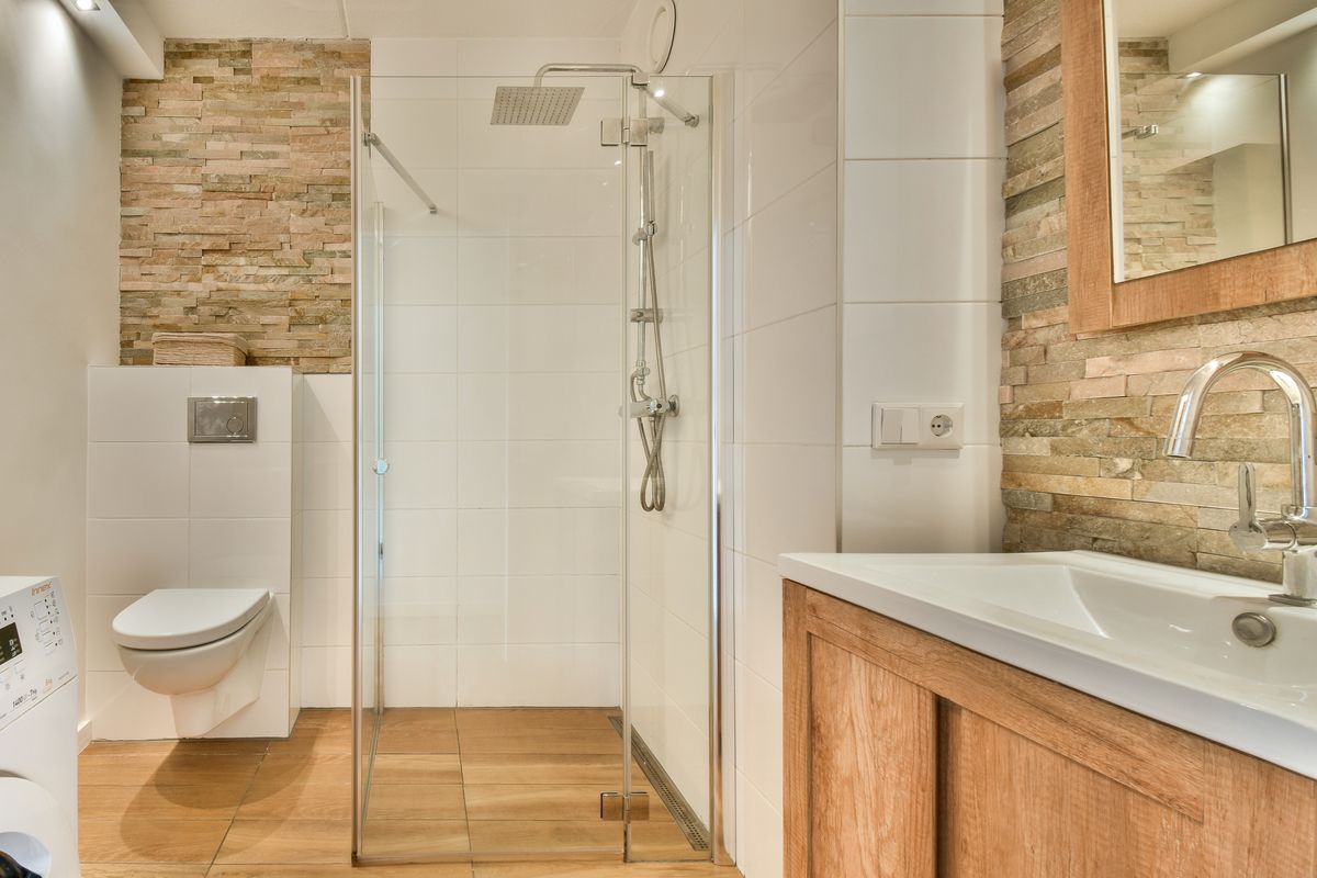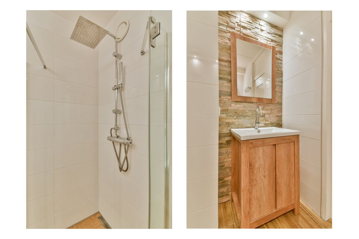 • Badkamer met douche, wastafel met meubel en 2e toilet
