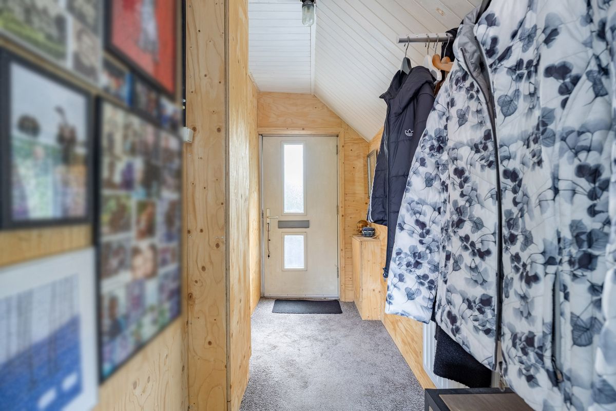 Je stapt binnen via de hal. Hier vind je meteen de meterkast en genoeg plek voor je jas, schoenen, tas.