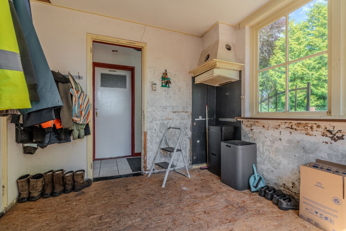 Bij binnenkomst komt u in de hal met vaste trap naar de verdieping. Vanuit hier bereikt u de gesloten woonkeuken met schouw, uitgerust met diverse inbouwapparatuur. De royale woonkamer beschikt over een sfeervolle speksteenkachel en de meterkast. Aansluitend bevindt zich de bijkeuken (voormalige keuken). Vanuit de tweede hal bereikt u het toilet en de moderne badkamer.