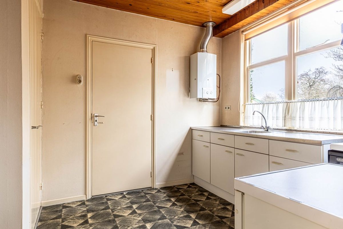 De begane grond kenmerkt zich door een ruime en veelzijdige indeling. Aan deze zijde bevindt zich een woonkamer met open keuken nu in gebruik als kantoorruimte.
