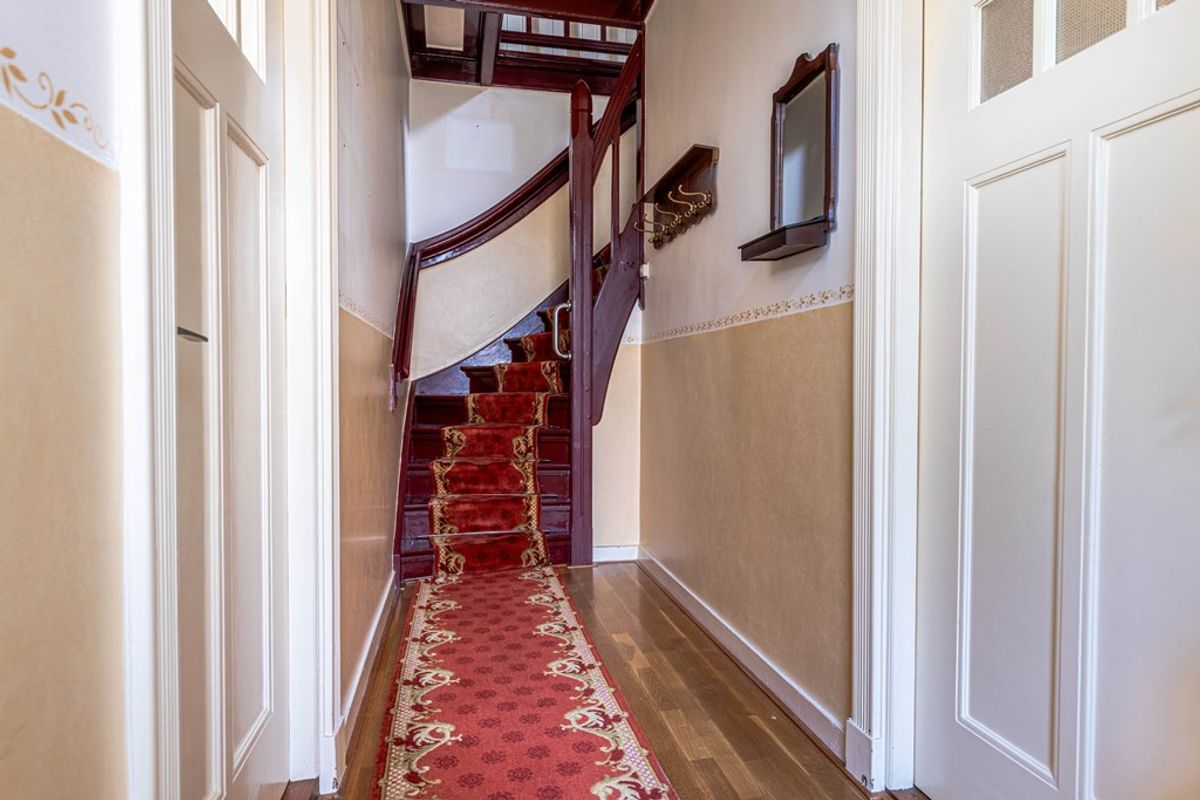 In dit deel van de woning is geen trap naar de verdieping. De zolderruimte boven het kantoor is bereikbaar via de eerste verdieping van nummer 257.