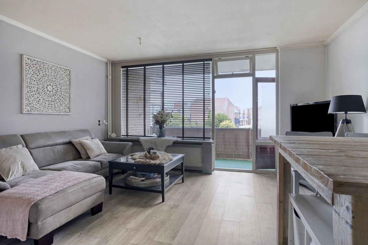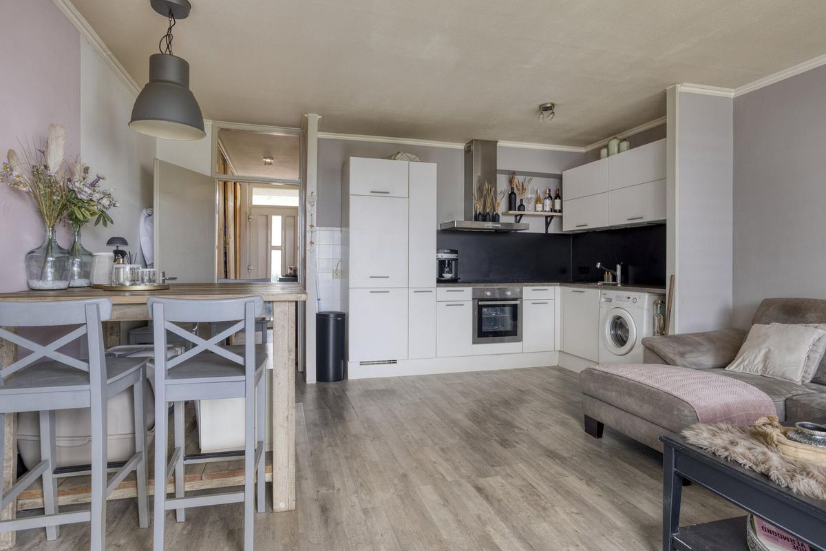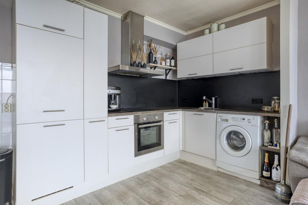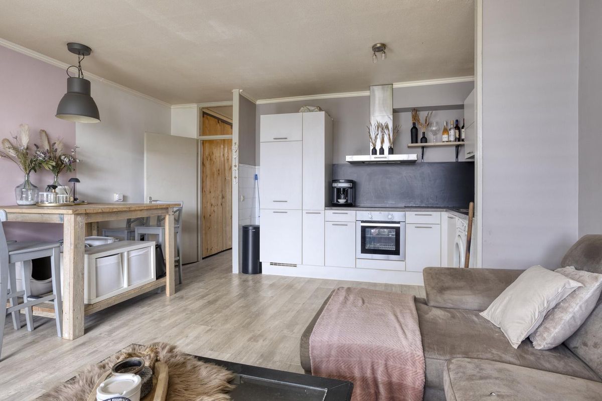 Via de hal/entree, waar zich de meterkast met 3 groepen en 1 aardlekschakelaar bevindt, betreedt u direct de woonkamer. Deze is voorzien van een in hoek opgestelde open keuken (vernieuwd in 2018) met diverse inbouwapparatuur, waaronder een inductiekookplaat, koelkast, oven en afzuigkap. De woonkamer en keuken vormen samen een ruimtelijk geheel van circa 26 m² en bieden toegang tot het balkon aan de achterzijde van het appartement.