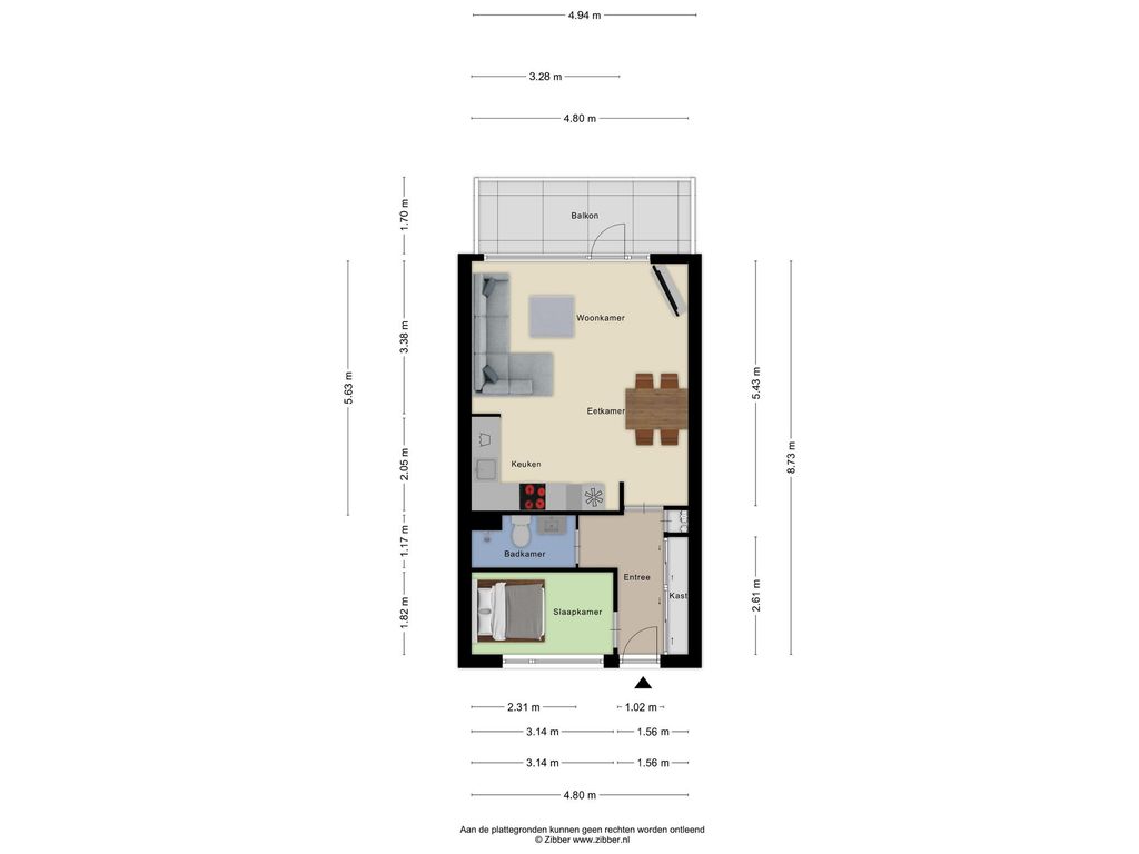 Het appartement is voorzien van een balkon aan de achterzijde.
