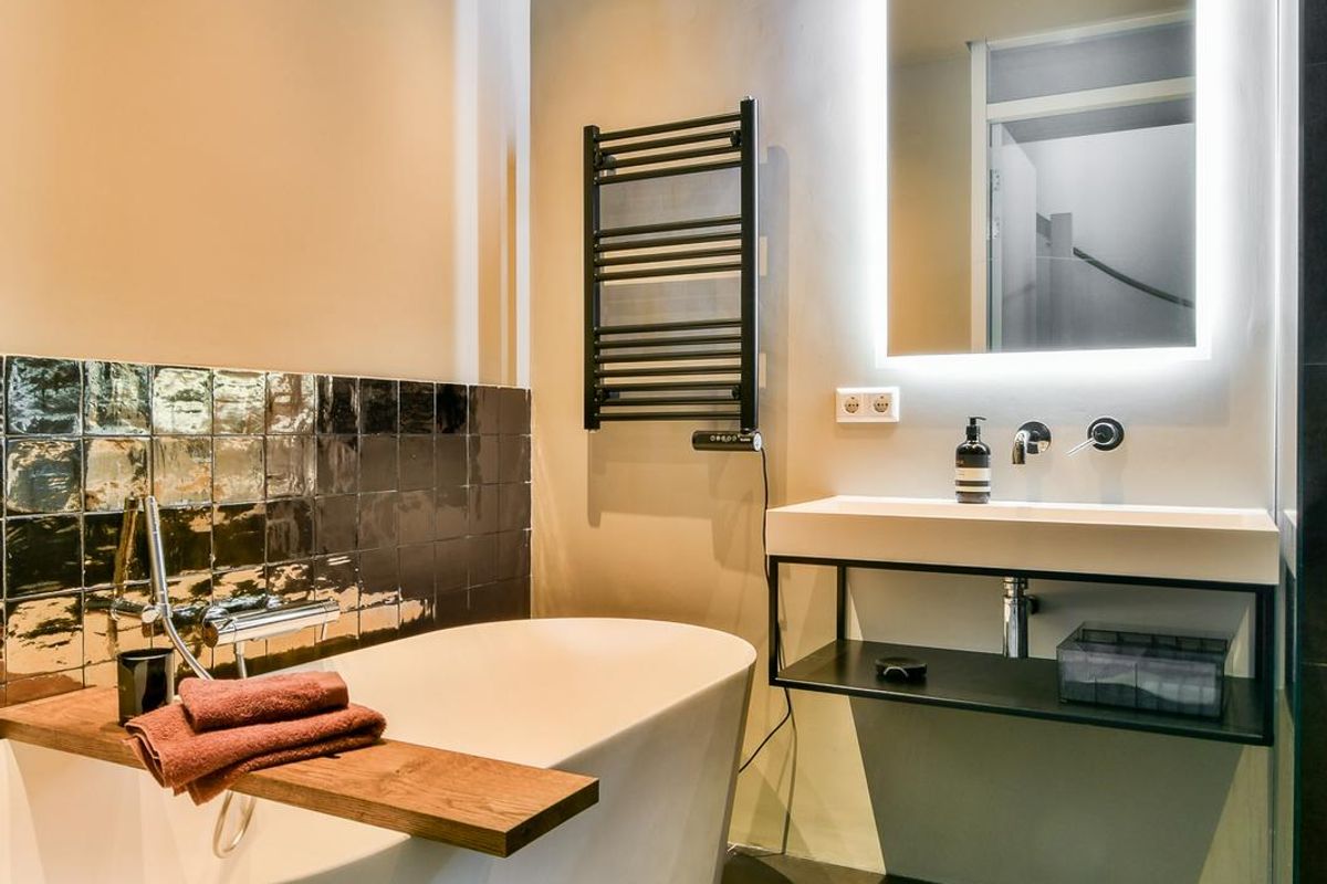 Rechtdoor bevinden zich een tweede separate toiletruimte met fonteintje en een moderne badkamer met inloopdouche en comfortabel ligbad, ideaal voor een ontspannen moment na een lange dag.
