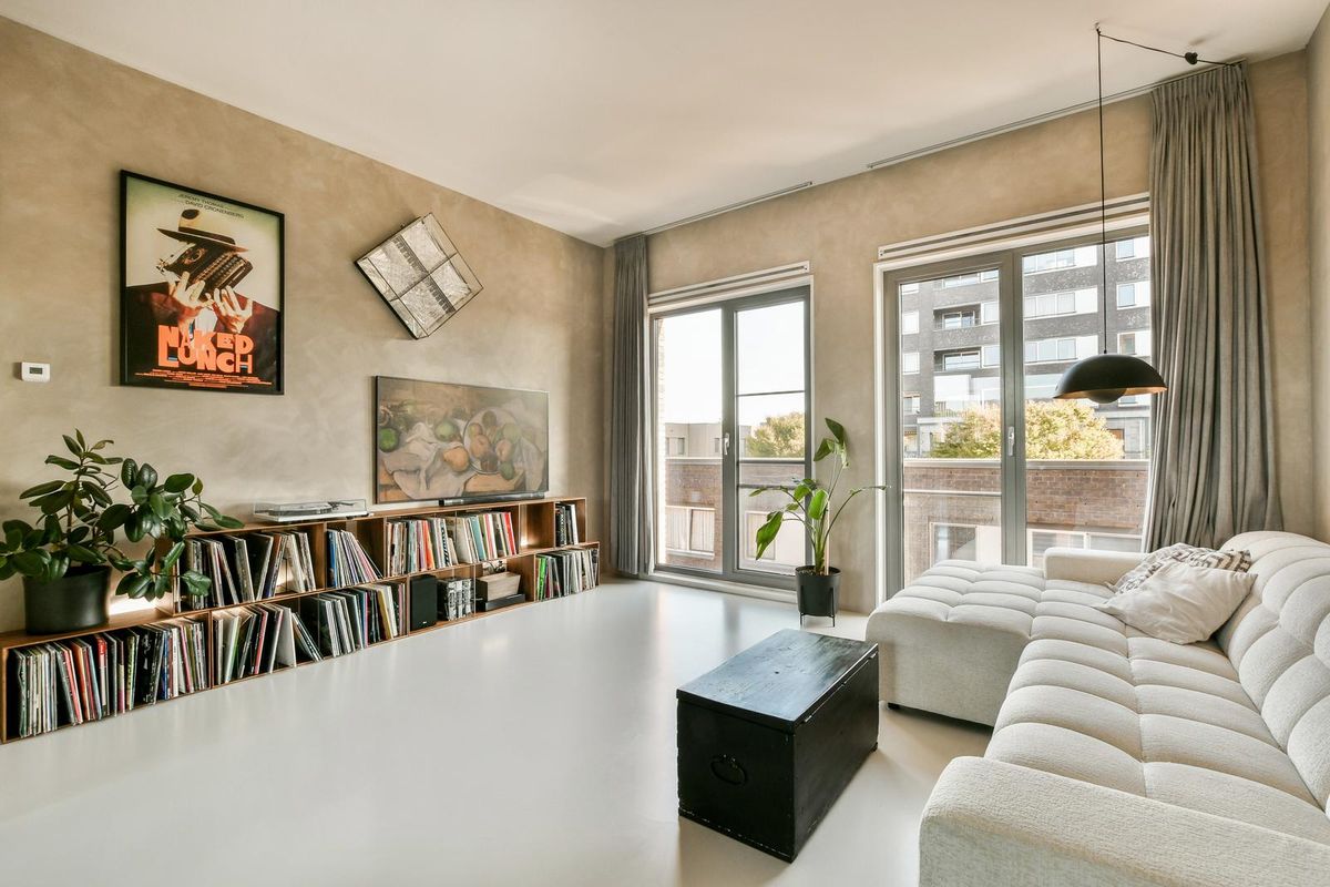 Grenzend aan de woonkamer bevindt zich het zonnige terras op het zuiden, waar je vrijwel de hele dag door kunt genieten van zon en buitenlucht, een waardevolle buitenruimte in de stad.