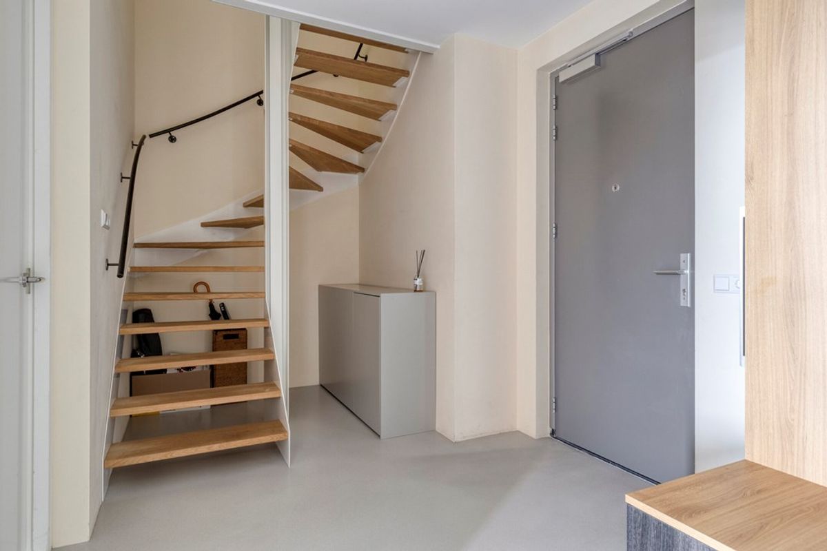Eerste woonverdieping: entree, hal met toilet, 2 slaapkamers, loggia, moderne badkamer met ruime inloopdouche en wastafel, trap naar de tweede woonverdieping.