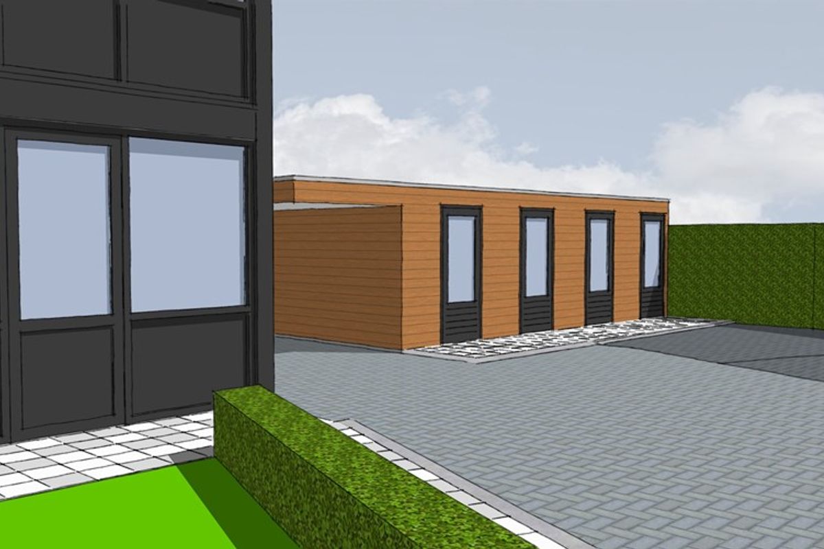 Het complex bestaat uit 4 appartementen ( 2 gelijkvloers en 2 op de 1e verdieping) met een eigen berging en parkeerplaats en een gezamenlijke fietsenstalling.