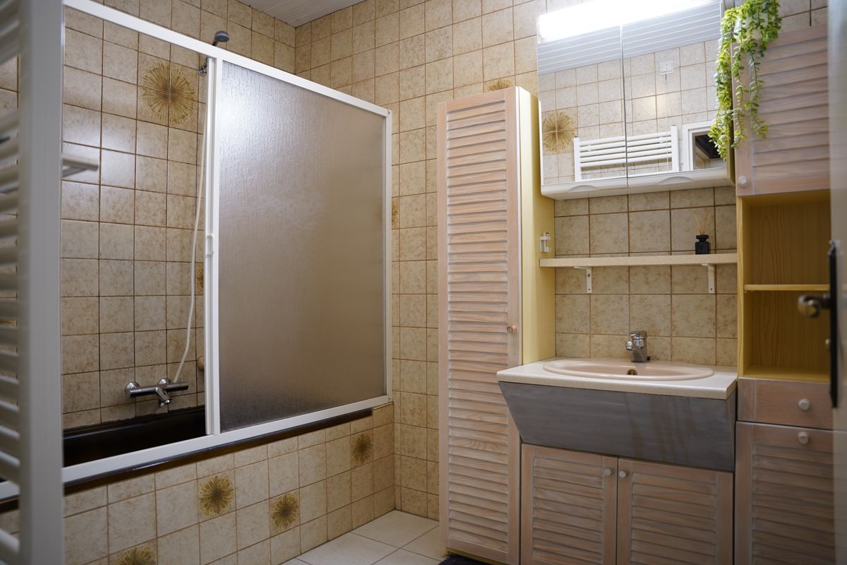 De badkamer op deze verdieping is eenvoudig, maar compleet met douche, wastafel en een 2e toilet. Aansluitend aan de badkamer is er een extra berging waar zich de cv ketel bevindt.