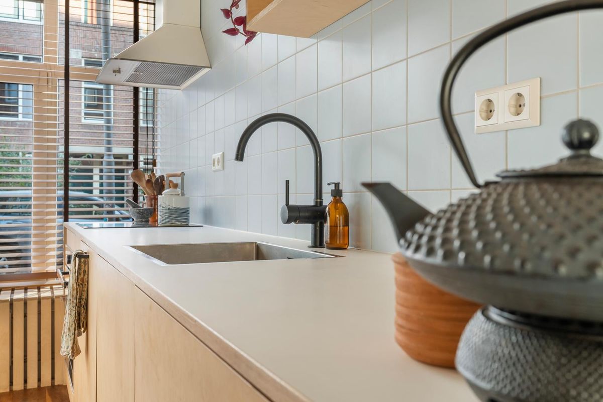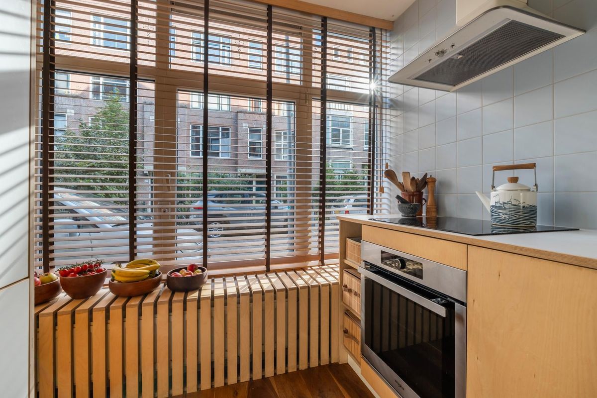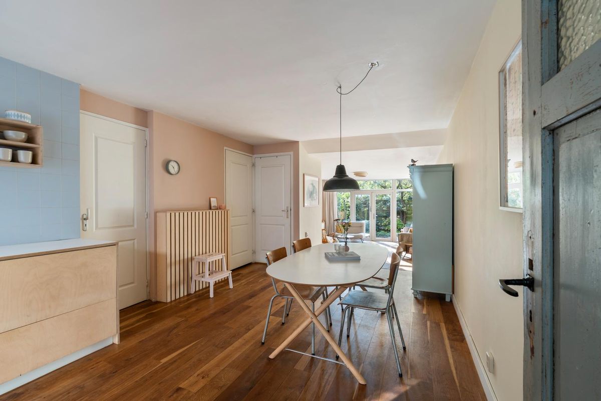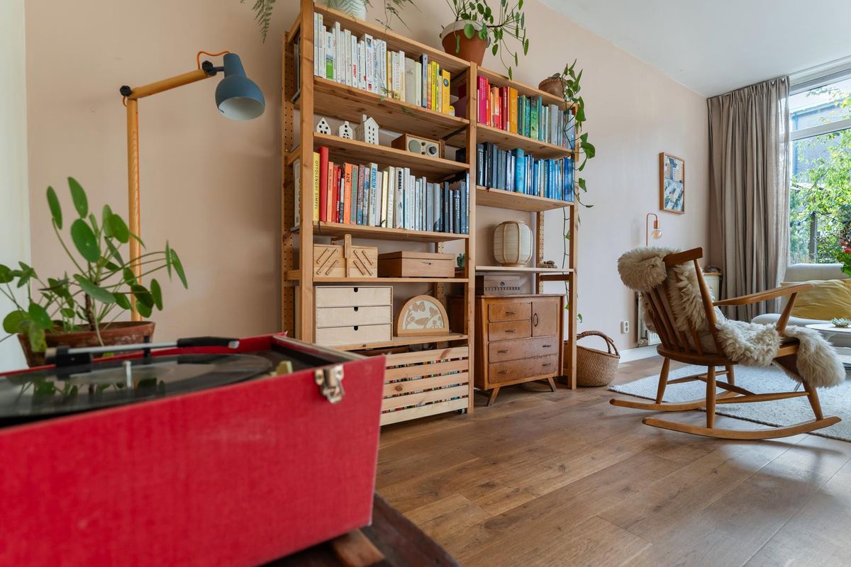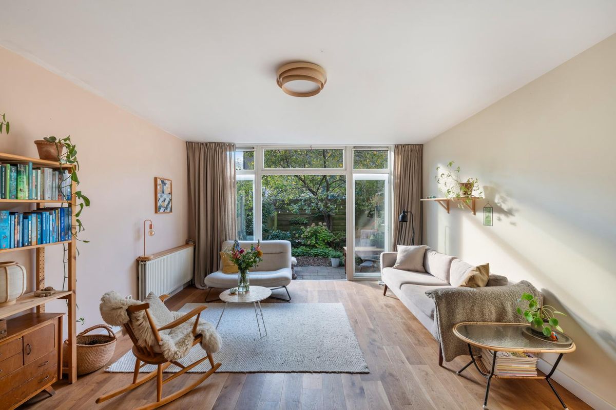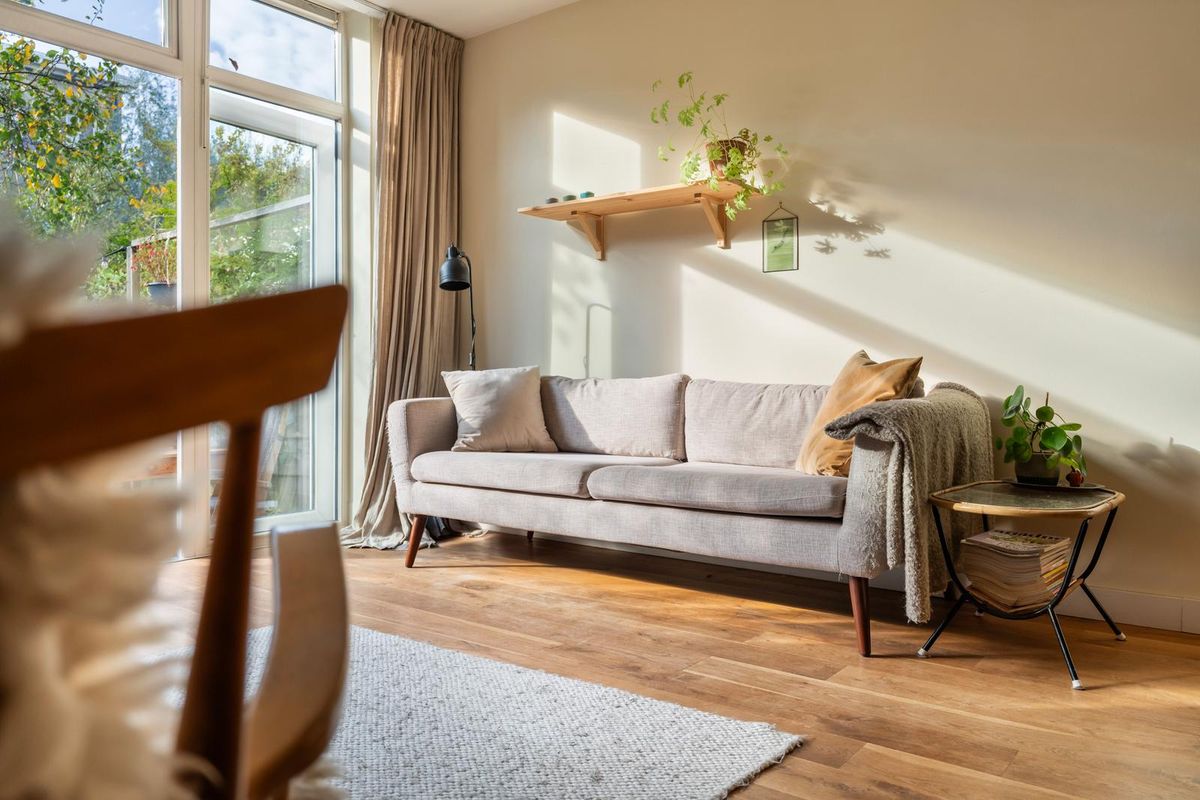 Entree met tochtportaal en toegang tot alle vertrekken. Bij binnenkomst ervaar je de ruimtelijke indeling, waarbij het gebruik van hout zorgt voor een natuurlijke en aangename sfeer. De eetkamer met vaste kasten (wasmachine-aansluiting) bevindt zich aan de voorzijde van de woning. De open keuken beschikt over diverse inbouwapparatuur, zoals een 4-pits elektrische kookplaat met afzuigkap, oven, vaatwasser en een koel-/vriescombinatie. Deze open woonkeuken is een plek waar koken en gezelligheid perfect samenkomen. Het is de ideale plek om lekker in contact te blijven met je gezelschap, terwijl je geniet van de open, gezellige sfeer. Doordat er een verhoging in de kamer is gecreëerd, ontstaat er een speels effect in de ruimte. Via deze trap bereik je het woongedeelte, gelegen aan de achterzijde van de woning. De riante ruimte biedt vele mogelijkheden voor het creëren van een sfeervolle en comfortabele zithoek. Het woongedeelte staat in directe verbinding met de royale achtertuin van 32 m2. Dankzij de openslaande deuren valt het daglicht mooi binnen en ontstaat er een natuurlijke verbinding tussen binnen en buiten. In de tuin is meer dan voldoende ruimte om lekker op een zomerse avond te dineren en lang te tafelen.