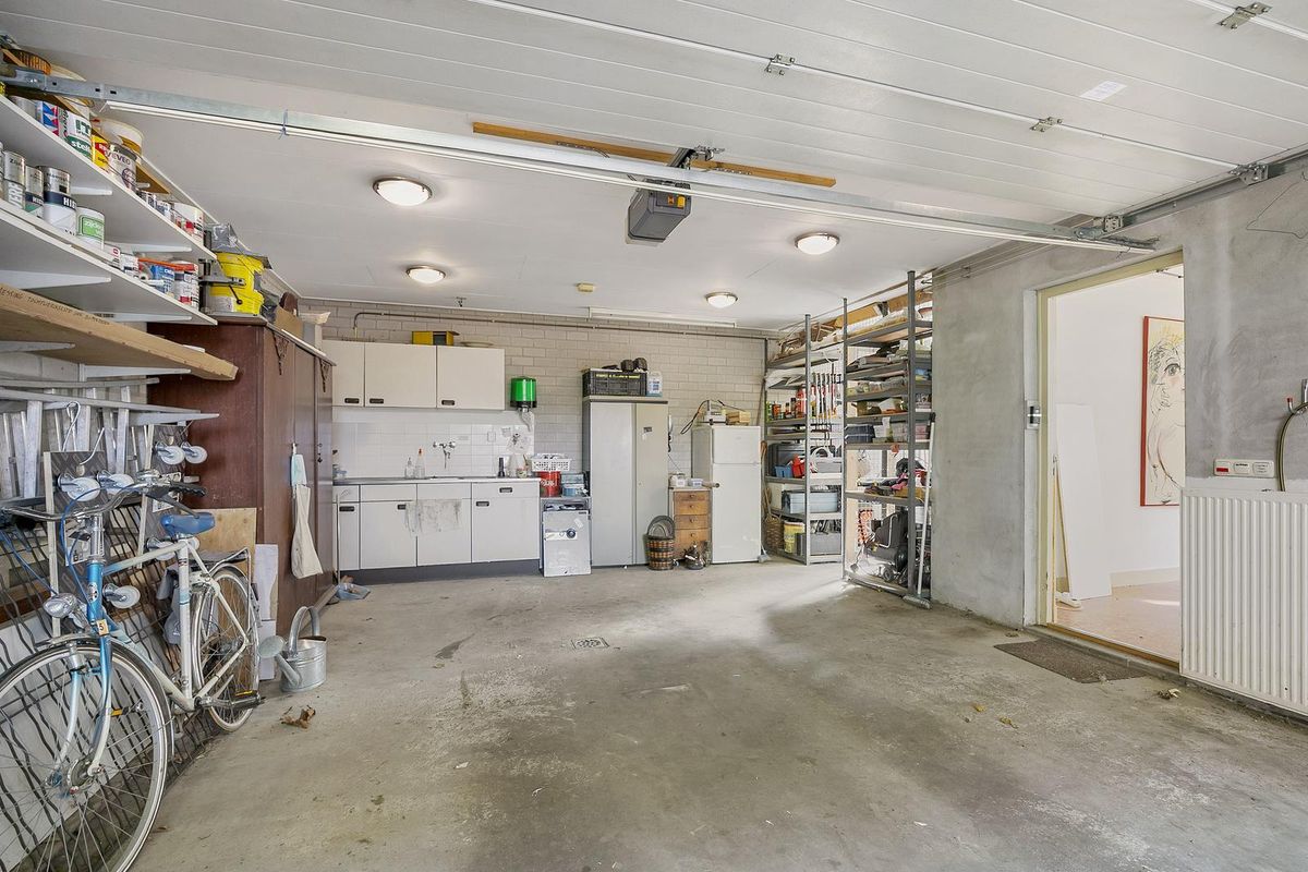 De royale garage van ca. 40 m² (later aangebouwd ca. 2000) biedt plaats aan twee auto’s en is voorzien van elektra, verwarming, een keukenblad met wasbak, elektrische garagedeur en een doorgang naar de achtertuin. Dankzij de royale afmetingen is deze ruimte niet alleen geschikt voor het parkeren van auto’s, maar ook ideaal als hobby-, klus- of bijkeuken.