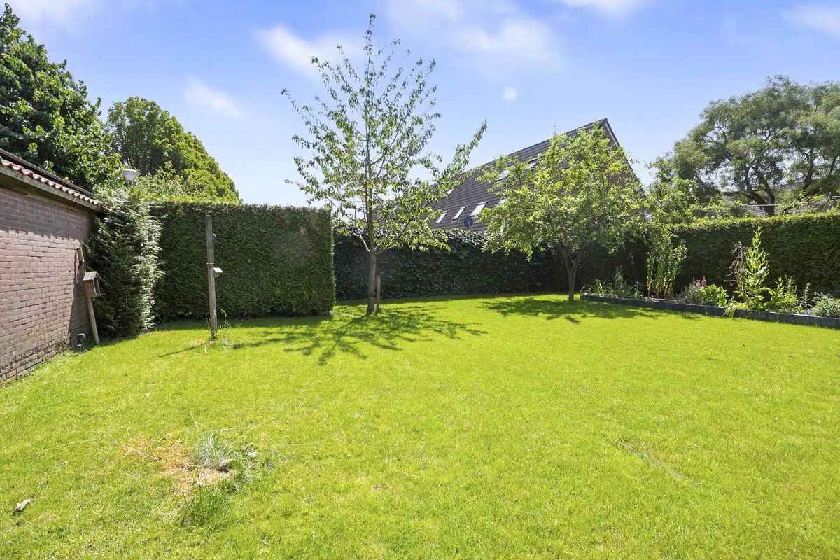 Buitenruimte: de voortuin is aangelegd met groen en een royale oprit waarop meerdere auto’s geparkeerd kunnen worden. De achtertuin is een oase van rust, ingericht met gras, sierperken, bomen (waaronder appelbomen) en een groene erfafscheiding. Vanuit de eetkamer geven openslaande deuren toegang tot het overdekte terras – een sfeervolle buitenruimte met karakteristieke tegels. Via de achterpoort is er een directe verbinding met een pad richting de speeltuin aan de Gravekamp – ideaal voor gezinnen met kinderen.