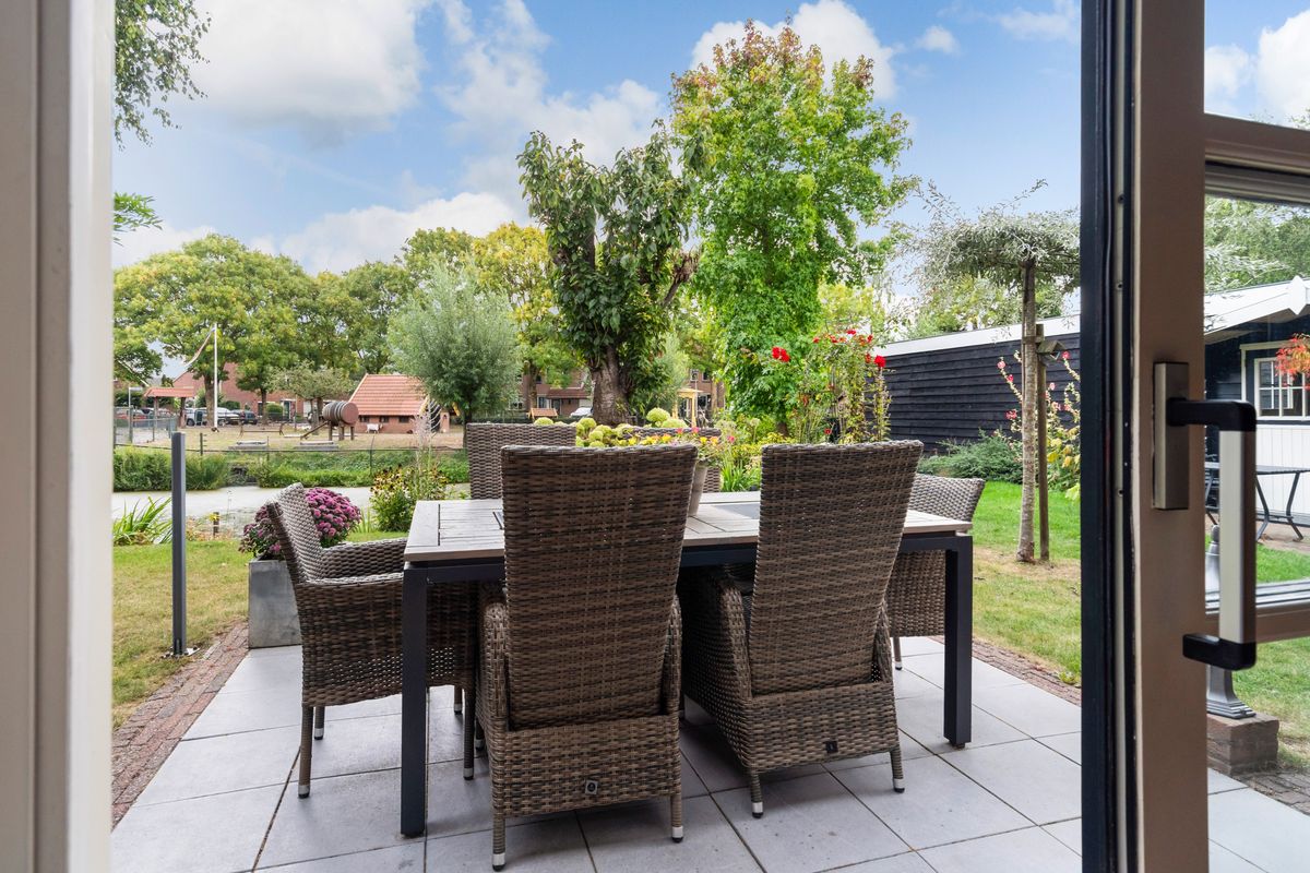 Aan de zijkant kijkt u vanuit de woning uit op een watergang en de dierenweide. De zonnige zijtuin is gesitueerd op het zuidoosten. Door de vrije ligging van de woning geniet u ieder moment van de dag ergens in de tuin van de zon.