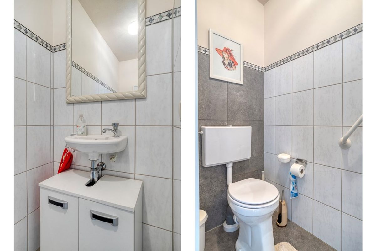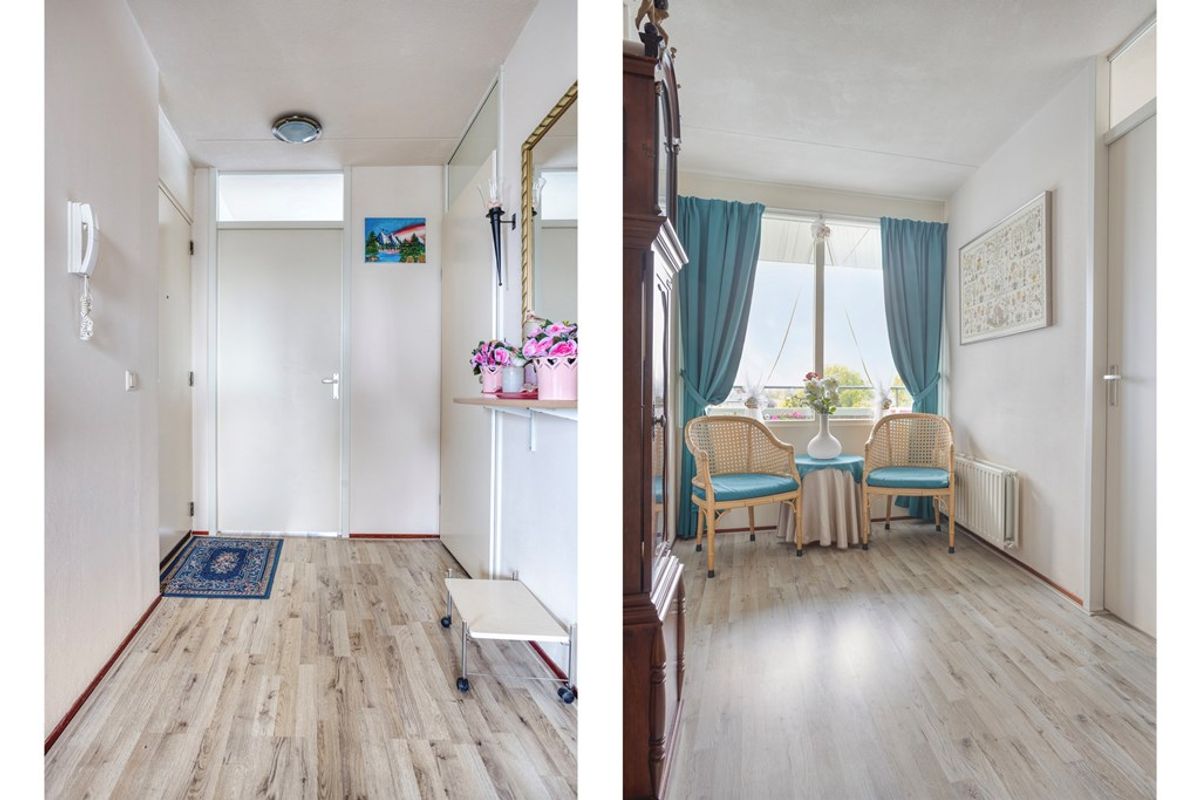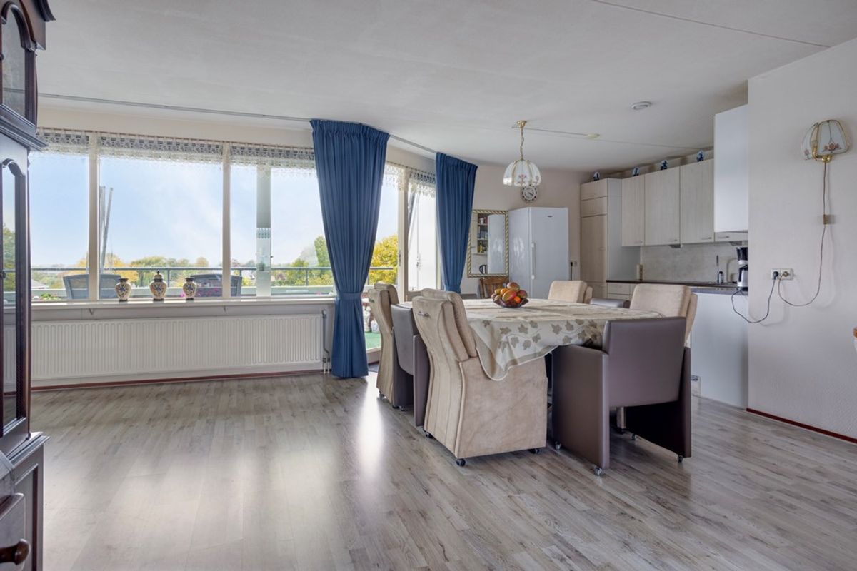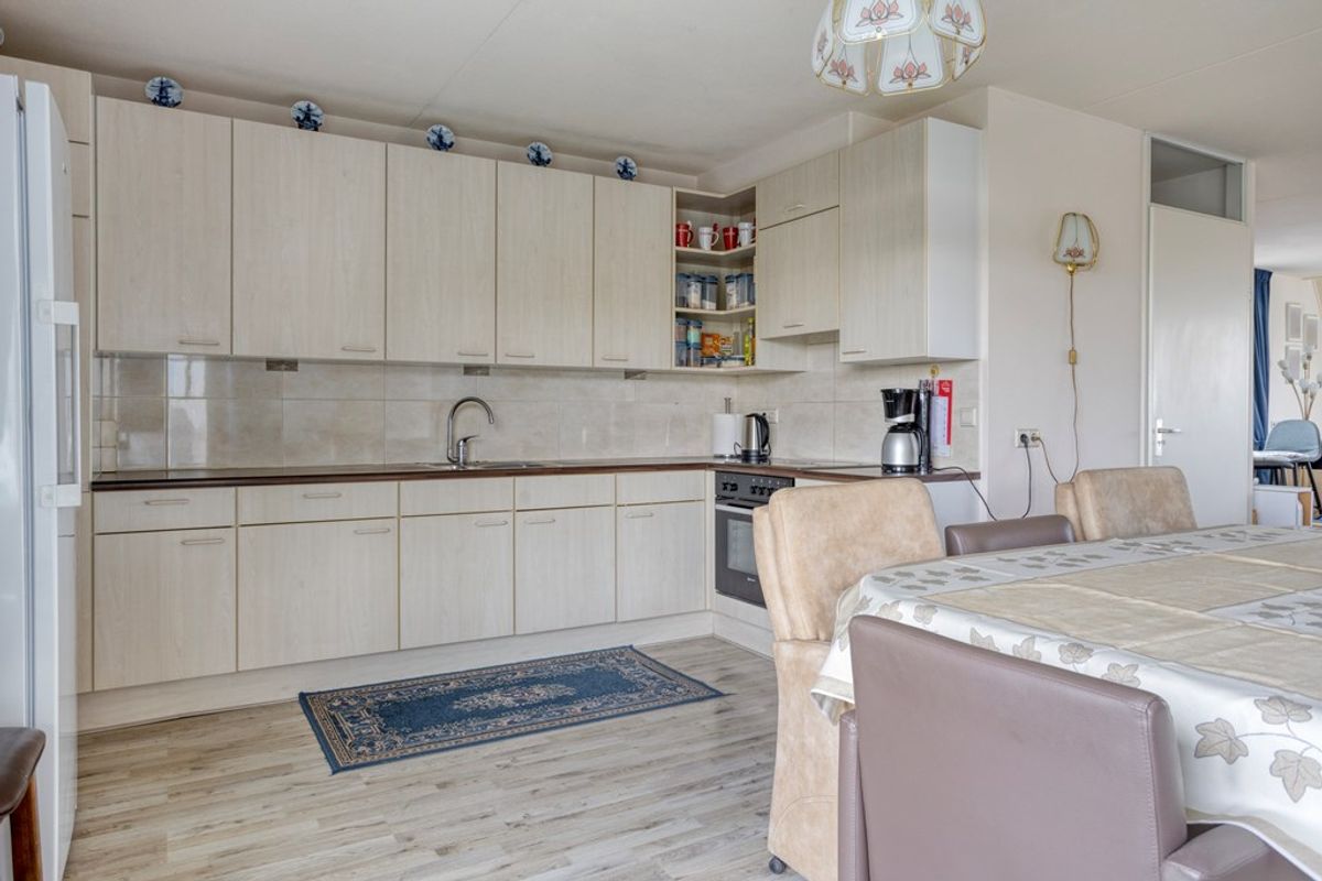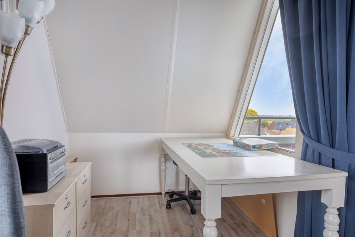 De keuken is voorzien van veel opbergruimte, waaronder een royale berging die perfect is voor extra voorraad of keukenapparatuur. Het penthouse beschikt over twee slaapkamers, waarvan de voorste kamer op het westen een eigen balkon heeft, een heerlijk plekje om te ontspannen en van de ondergaande zon te genieten. De badkamer en het aparte toilet zijn netjes afgewerkt en goed onderhouden.
