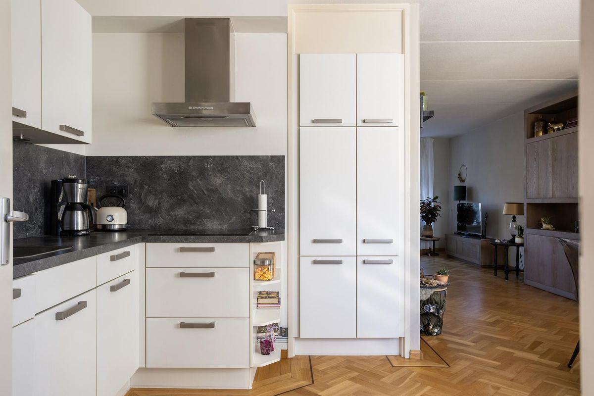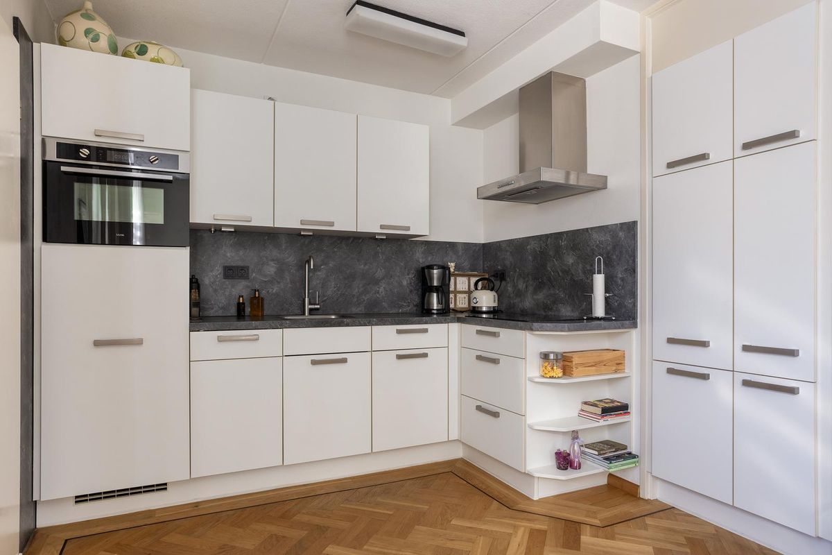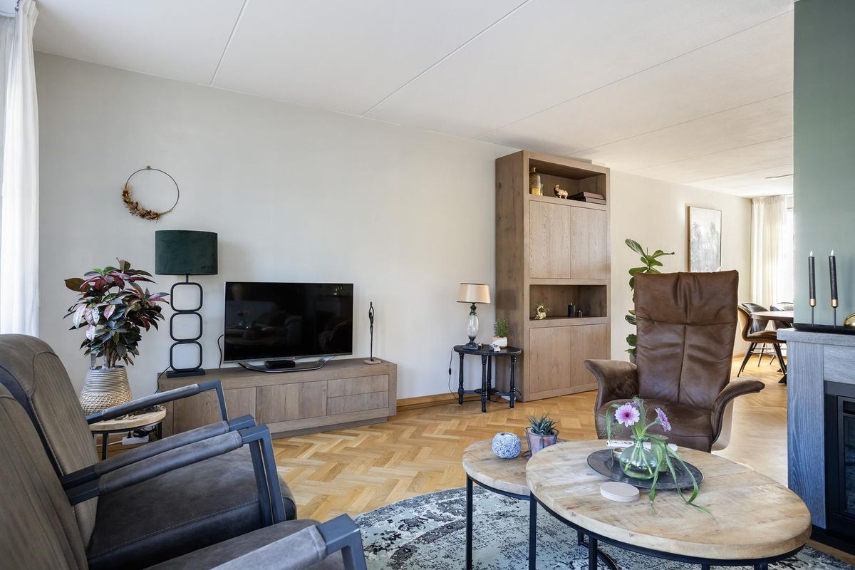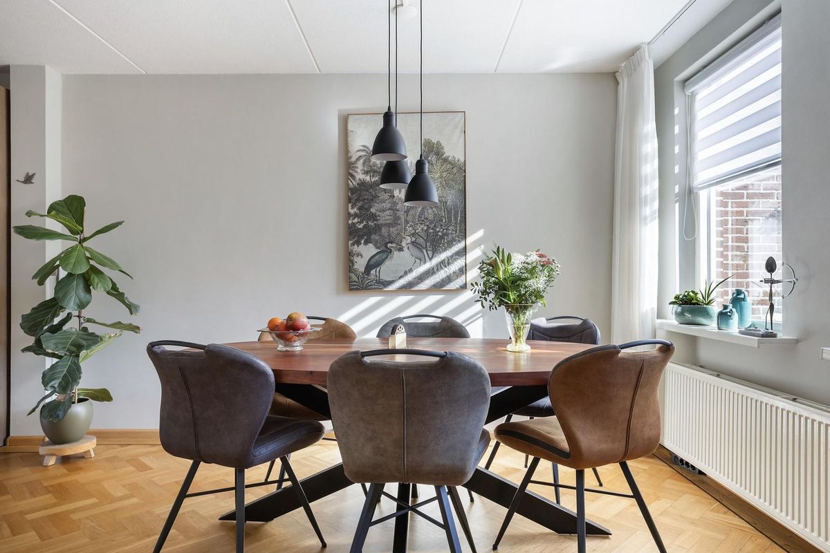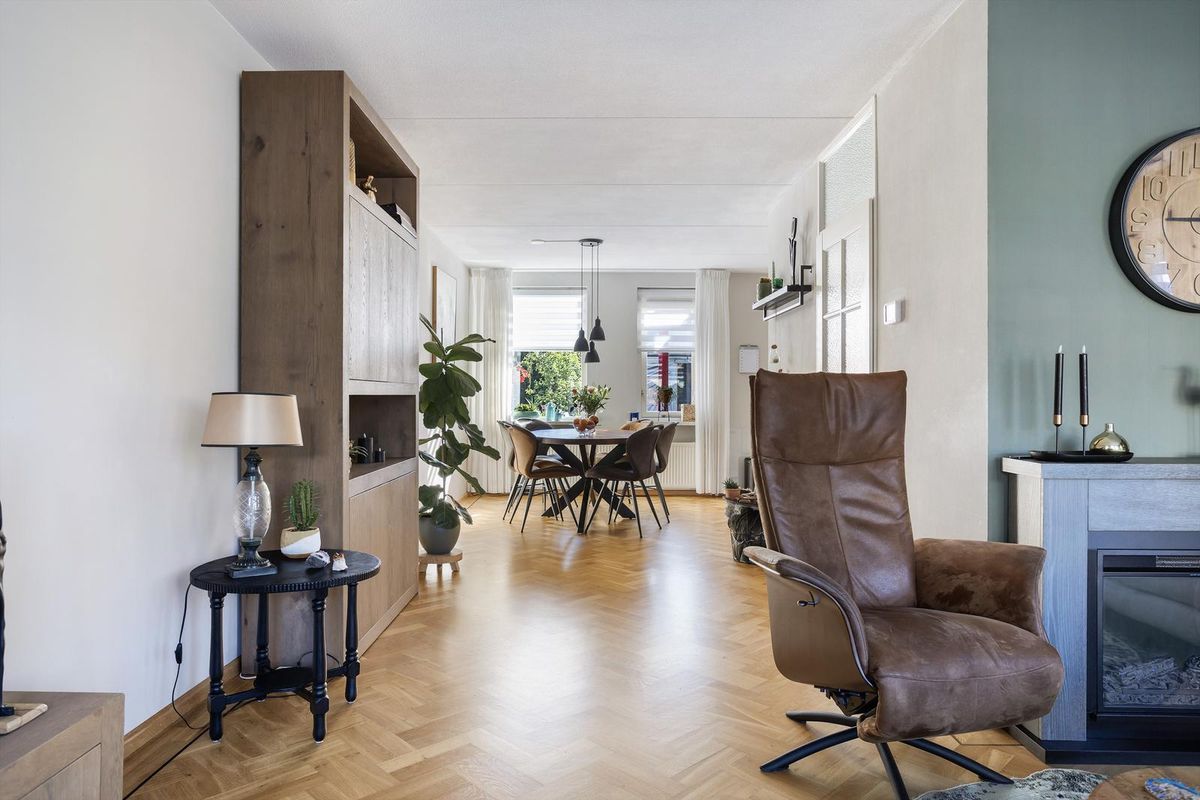 Indeling: entree in de hal met garderobe, trapopgang en meterkast, vernieuwd hangtoilet (2015) v.v. fontein, doorgang naar de straatgerichte woonkamer met fraaie raampartij, doorgang naar het tuingerichte achterhuis met een licht en ruim opgezet eetgedeelte en een neutrale, open inbouwkeuken (2013) v.v. koelkast, vaatwasser, keramische kookplaat, schouw en een combi- magnetron, doorgang naar de praktische bijkeuken met witgoedaansluitingen, terrasdeur en een binnendoor naar de aangebouwde, garage (19 m2) v.v. achterdeur en een loopdeur naar de carport.
