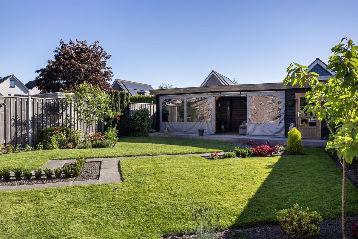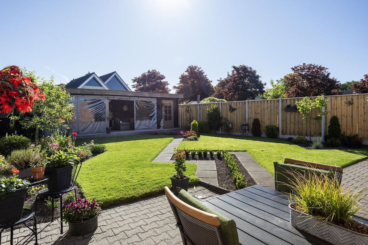 Tuin: het huis is gunstig gelegen op de kavel waardoor er aan de voorzijde voldoende parkeergelegenheid op eigen grond aanwezig is en aan de achterzijde voldoende ruimte om heerlijk te kunnen genieten. In de tuin is een stijlvol houten tuinhuis met een riant overdekt terras aanwezig en het geheel verkeert in een zeer verzorgde staat. Vanwege de vrije en open ligging heeft u, als de zon schijnt, vrijwel de gehele dag de zon ergens in uw tuin! Aan de voorzijde is er een ruime oprit én een carport aanwezig!