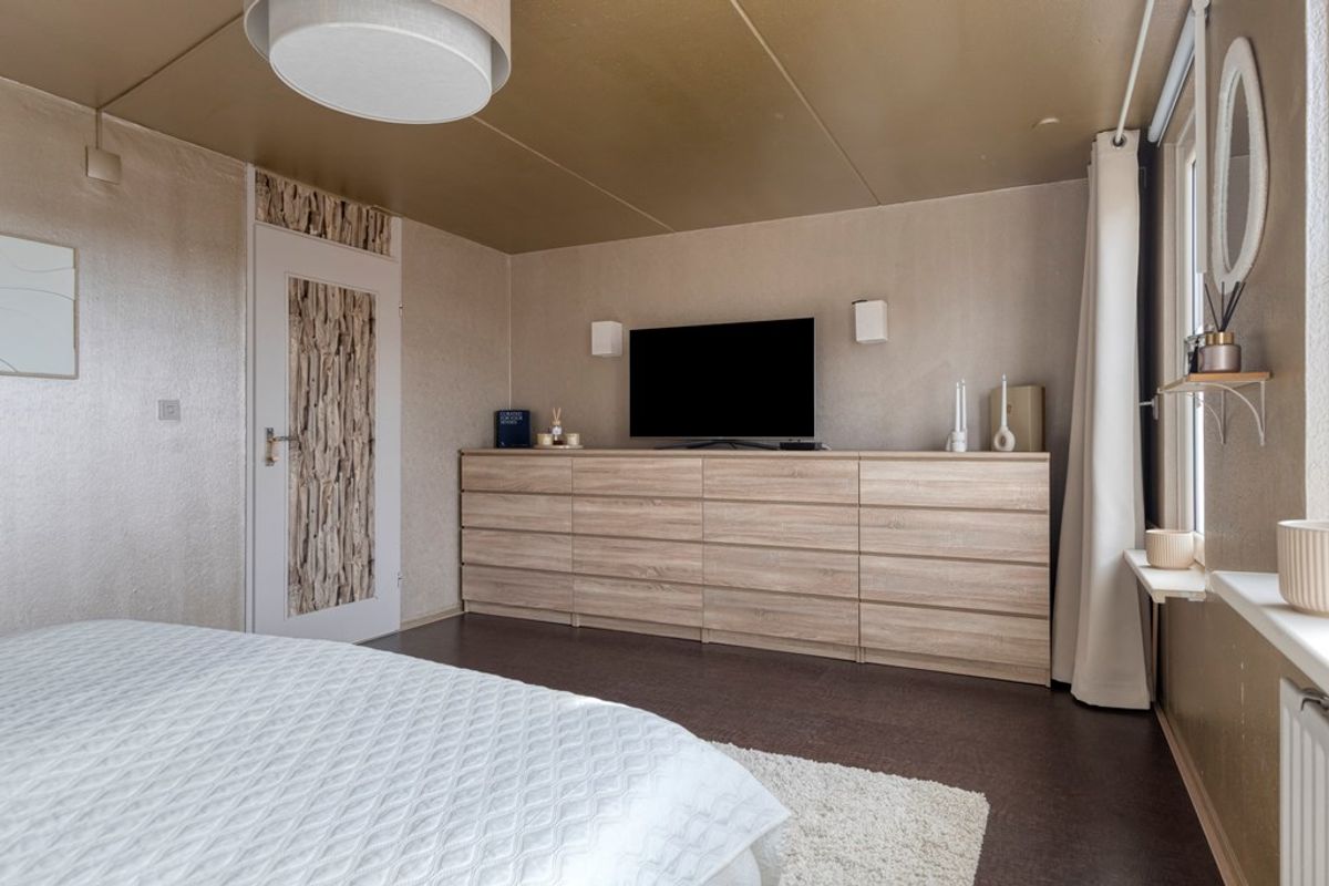 Zolder/slaapkamer met inloopkast en aparte wasmachineruimte.