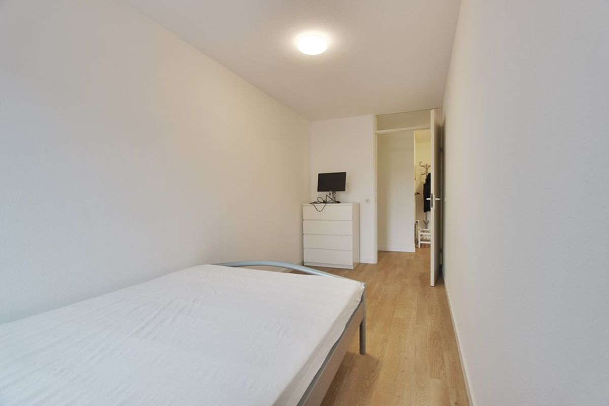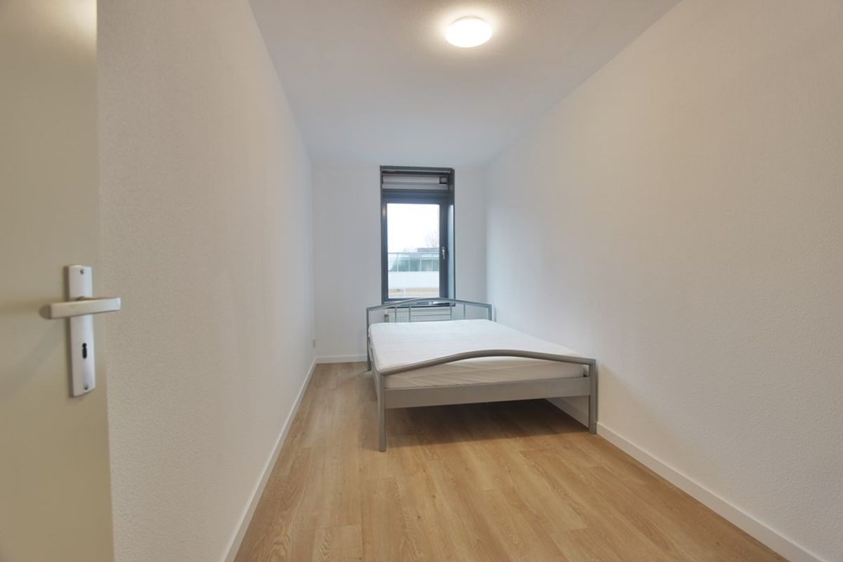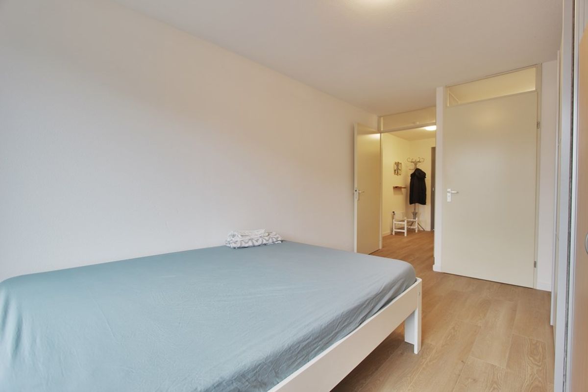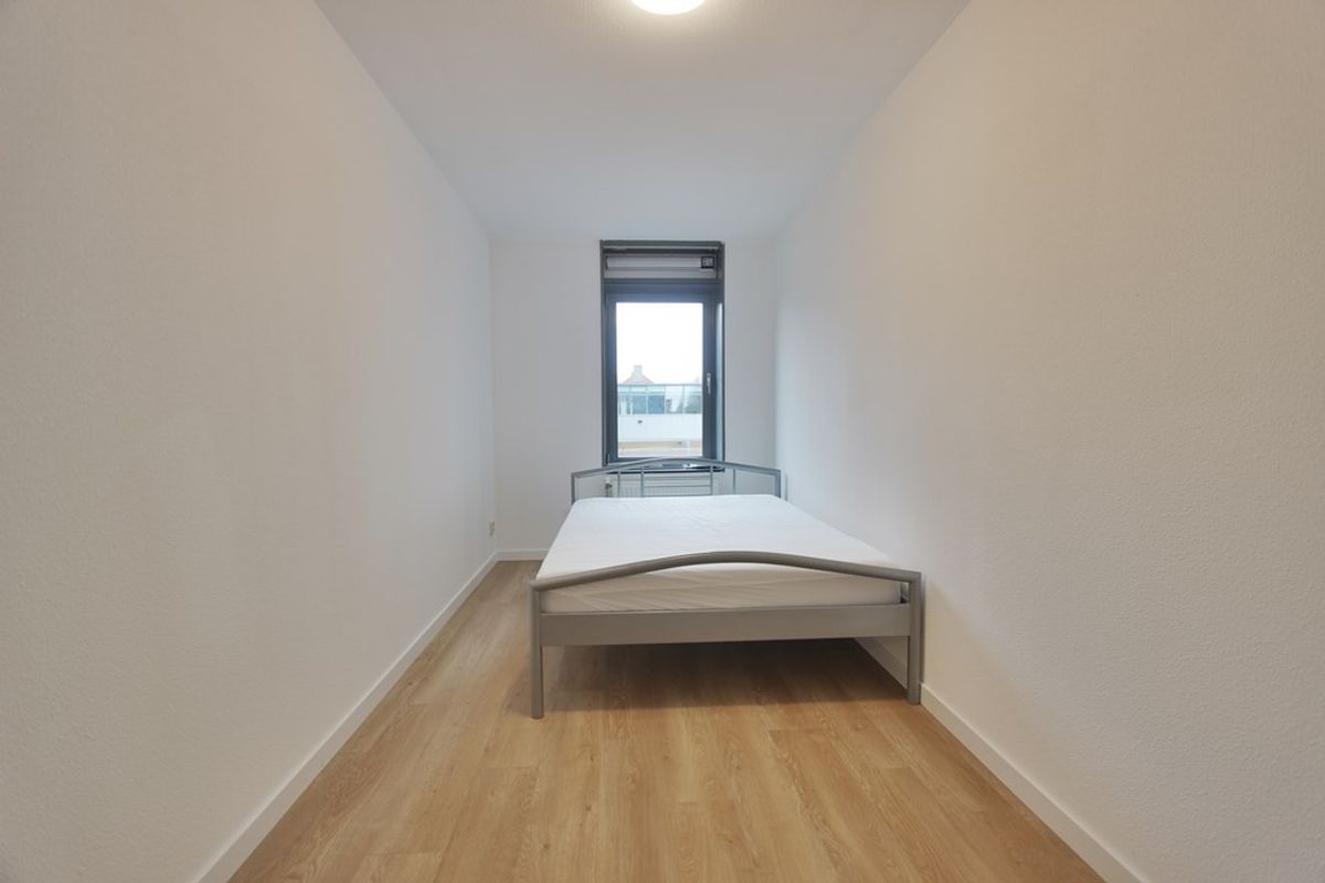 Het appartement heeft 2 slaapkamers en een ruime nieuwe gerenoveerde badkamer voorzien van een inloopdouche, wastafel met meubel, spiegel en handdoeken radiator.