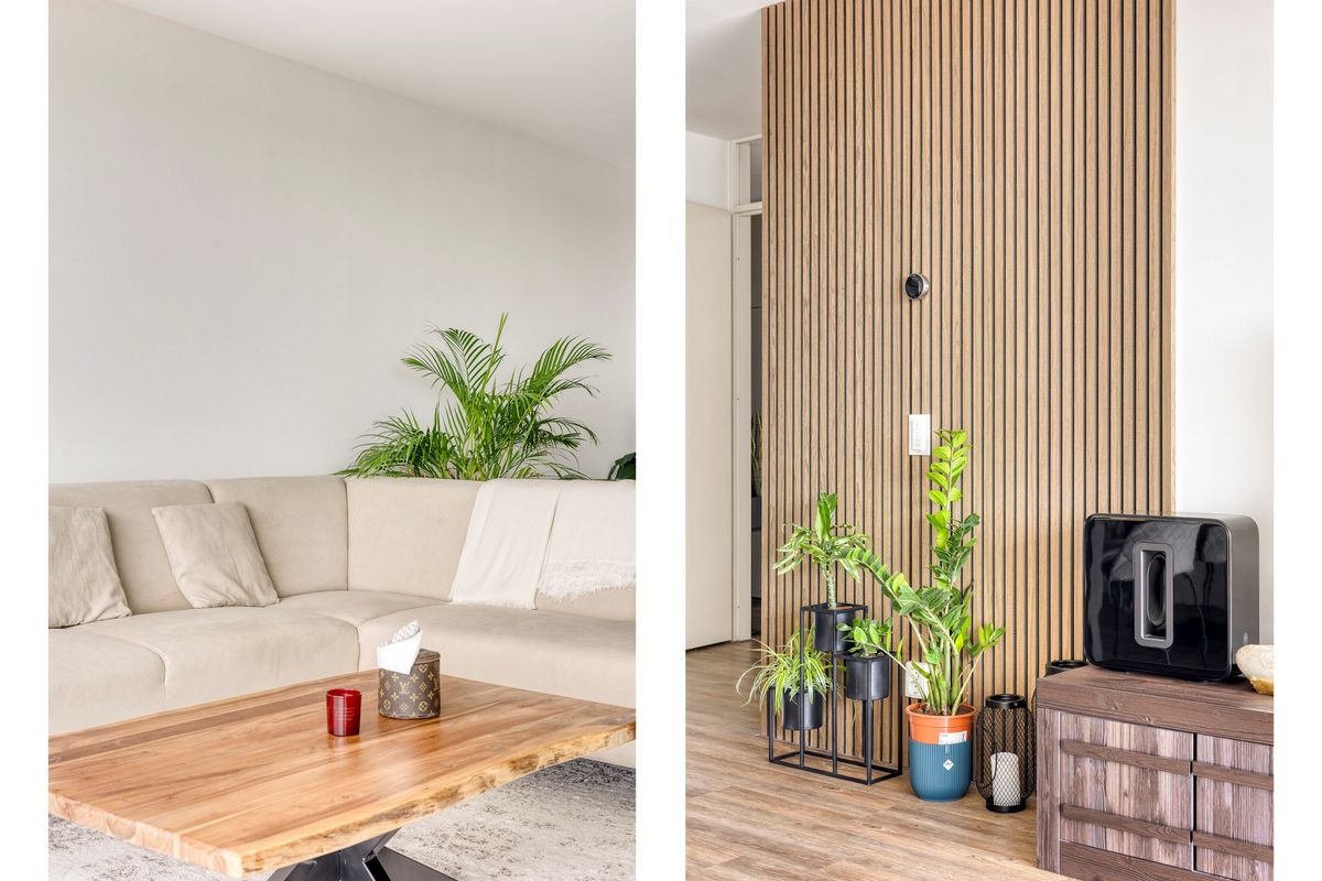 De gehele woning is voorzien van strak gestuukte wanden, een moderne pvc-vloer in houtlook en slimme verlichting via het Philips Hue Smart system — een combinatie van comfort, sfeer en gebruiksgemak.