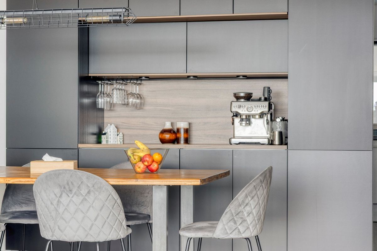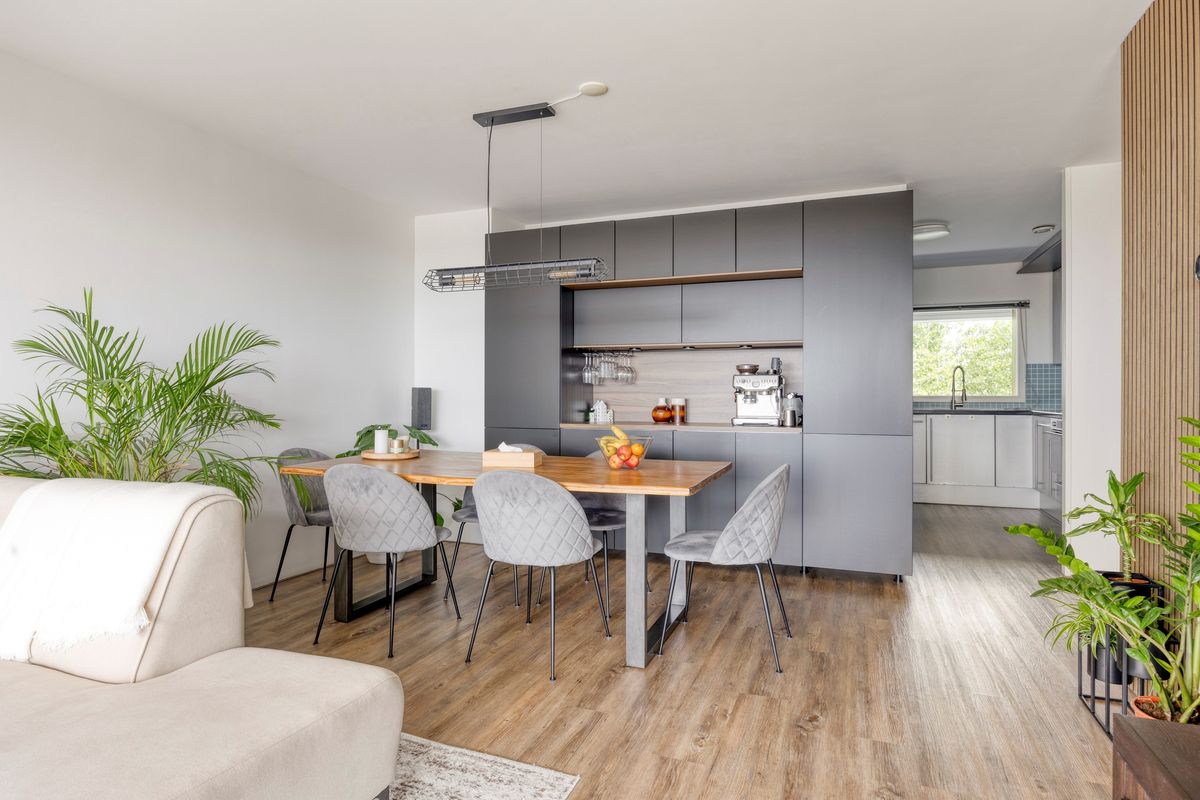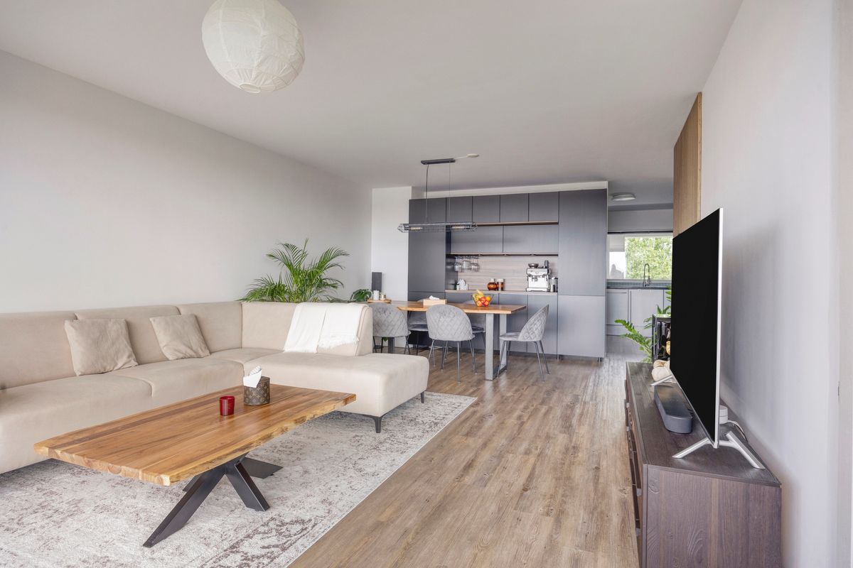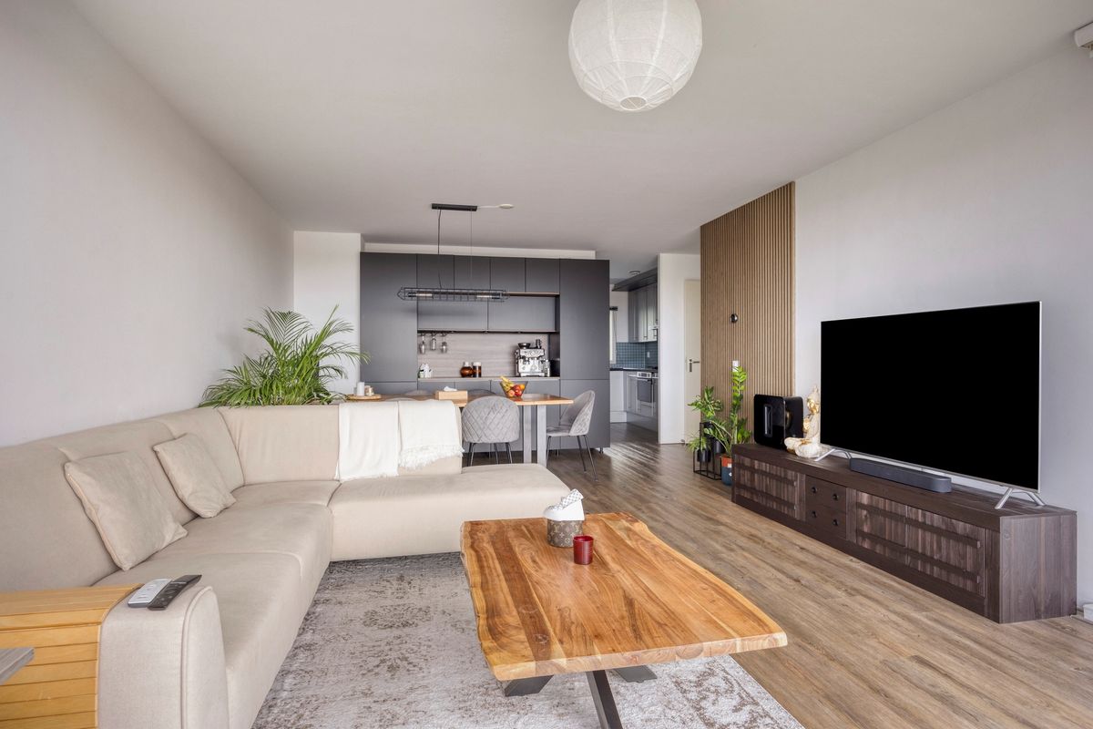 The entire apartment has smooth plastered walls, a modern wood-look PVC floor, and smart lighting via the Phillips Hue Smart System — a perfect combination of comfort, atmosphere, and convenience.