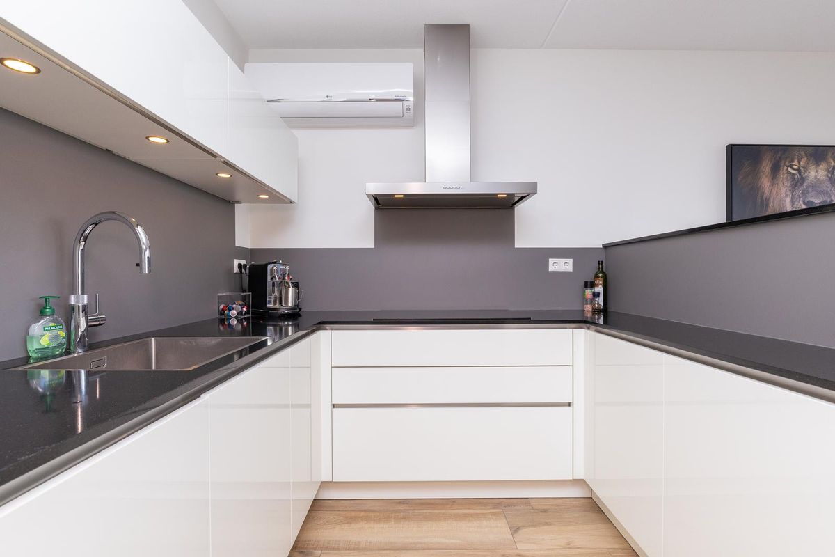 De royale living is modern ingericht en strak afgewerkt. De open keuken in U-opstelling is een echte eyecatcher en voorzien van hoogwaardige inbouwapparatuur zoals een inductiekookplaat, vaatwasser, combi-oven, koelkast, afzuigkap én een Quooker. Dankzij de vloerverwarming én airconditioning is het hier elk seizoen heerlijk genieten.