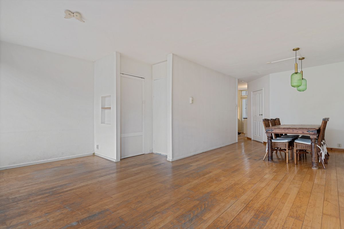 De woonkamer biedt toegang tot alle vertrekken: een ruime slaapkamer aan de rustige achterzijde, een keuken met toegang tot het royale balkon (gelegen op het oosten), een badkamer met toilet en een handige inpandige berging.