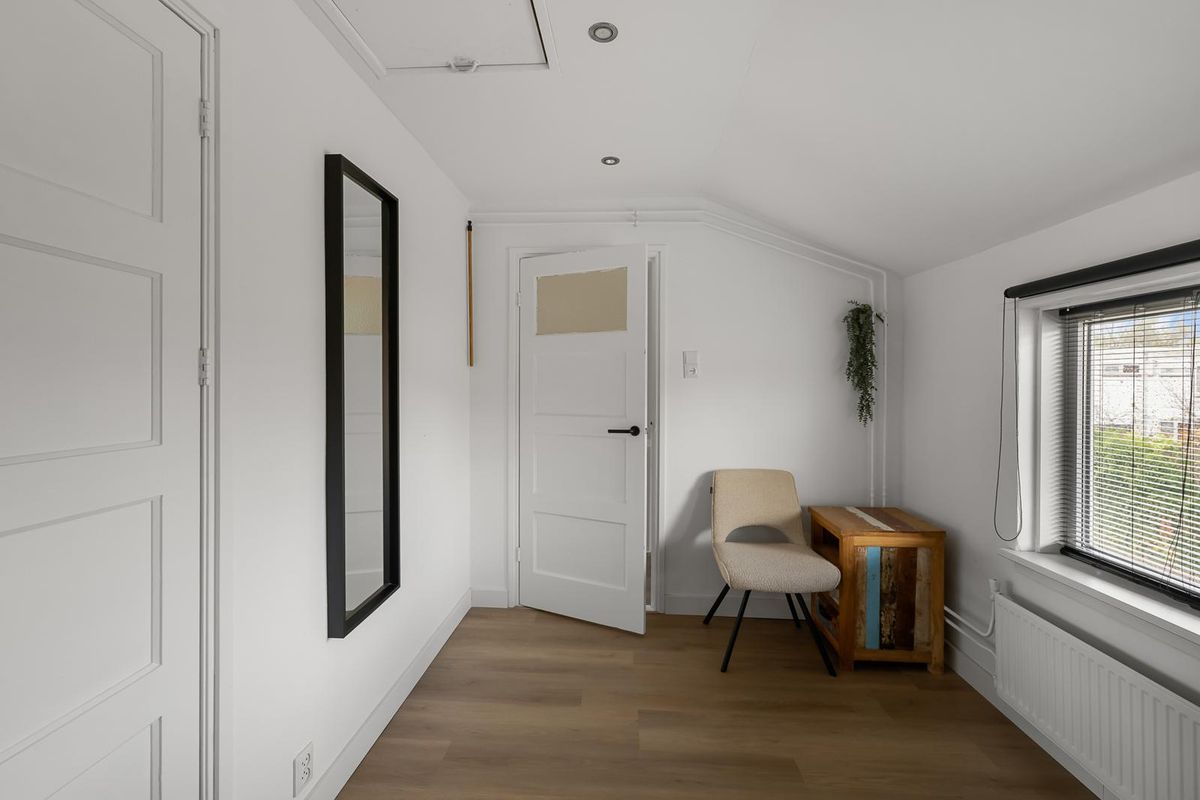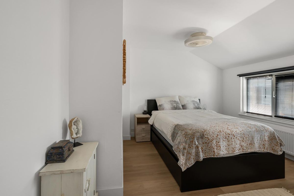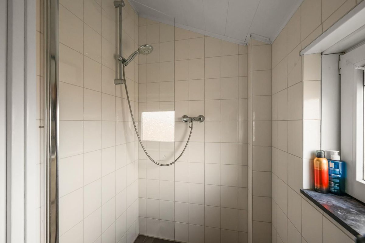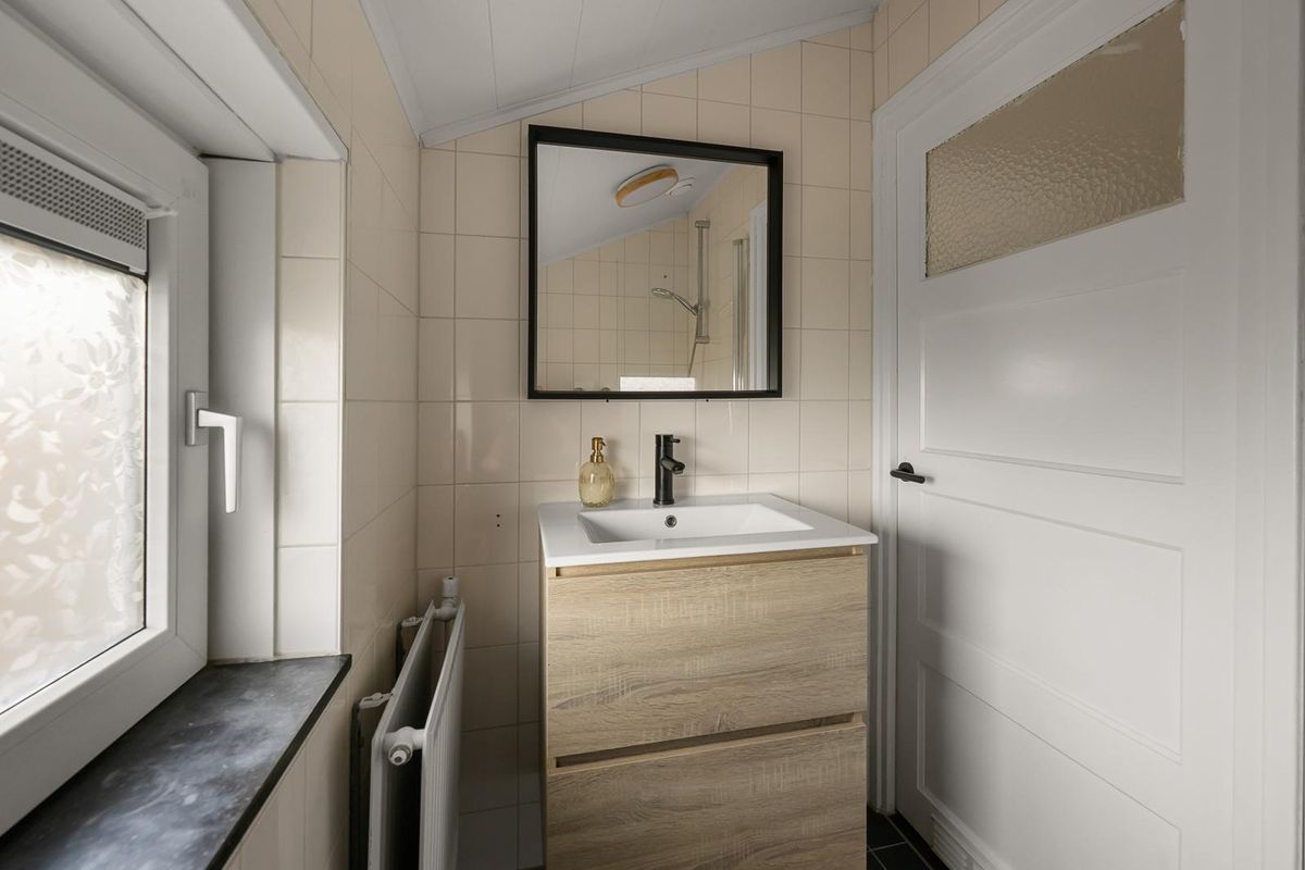 Op de eerste verdieping vind je drie slaapkamers, waarvan er één momenteel in gebruik is als wasruimte met opstelling voor de wasmachine, droger en de Intergas CV-ketel (2012). De badkamer is compact maar netjes, met een inloopdouche, wastafelmeubel (nieuw) en een raam voor daglicht en ventilatie. Boven is nog een ruime bergvliering bereikbaar via een vlizotrap.