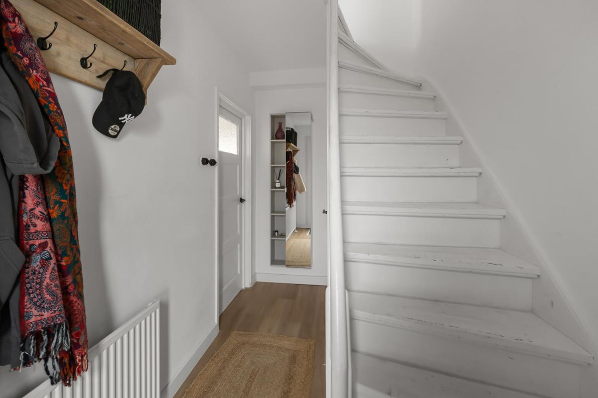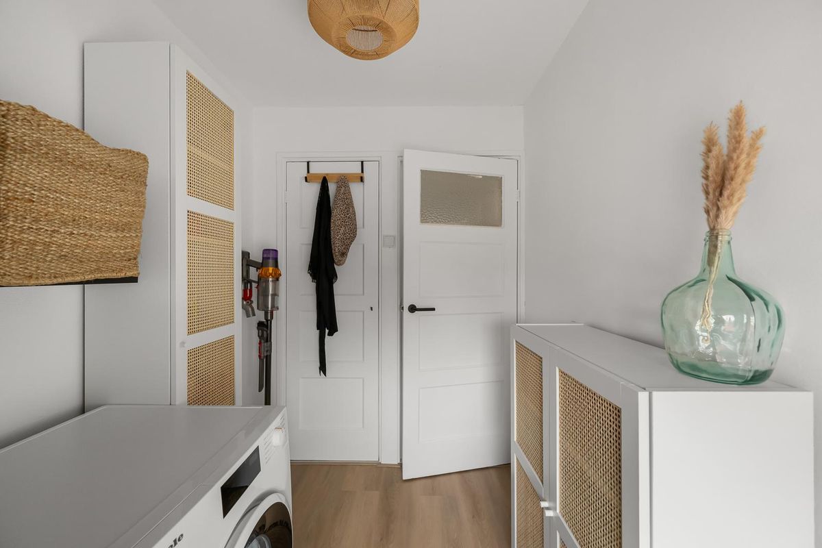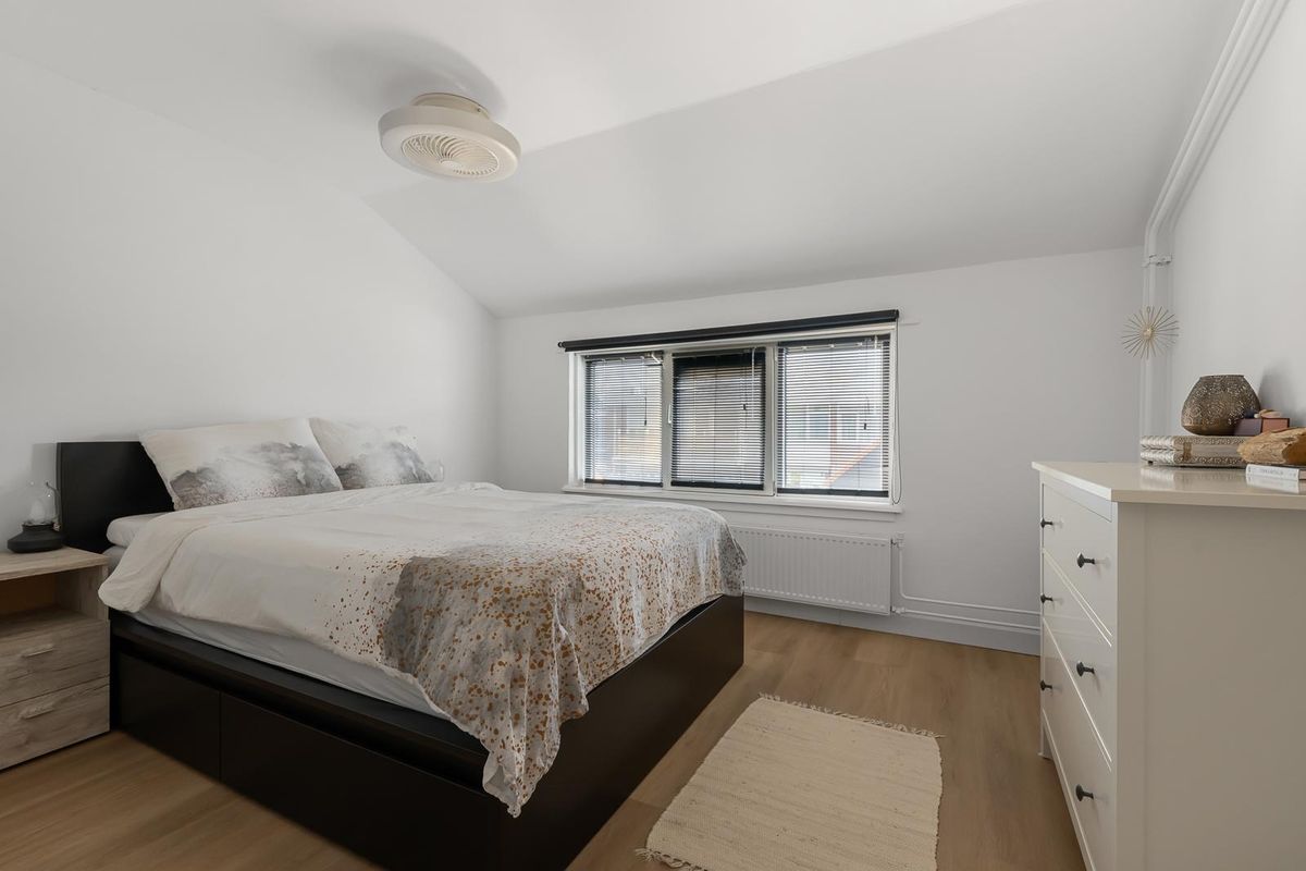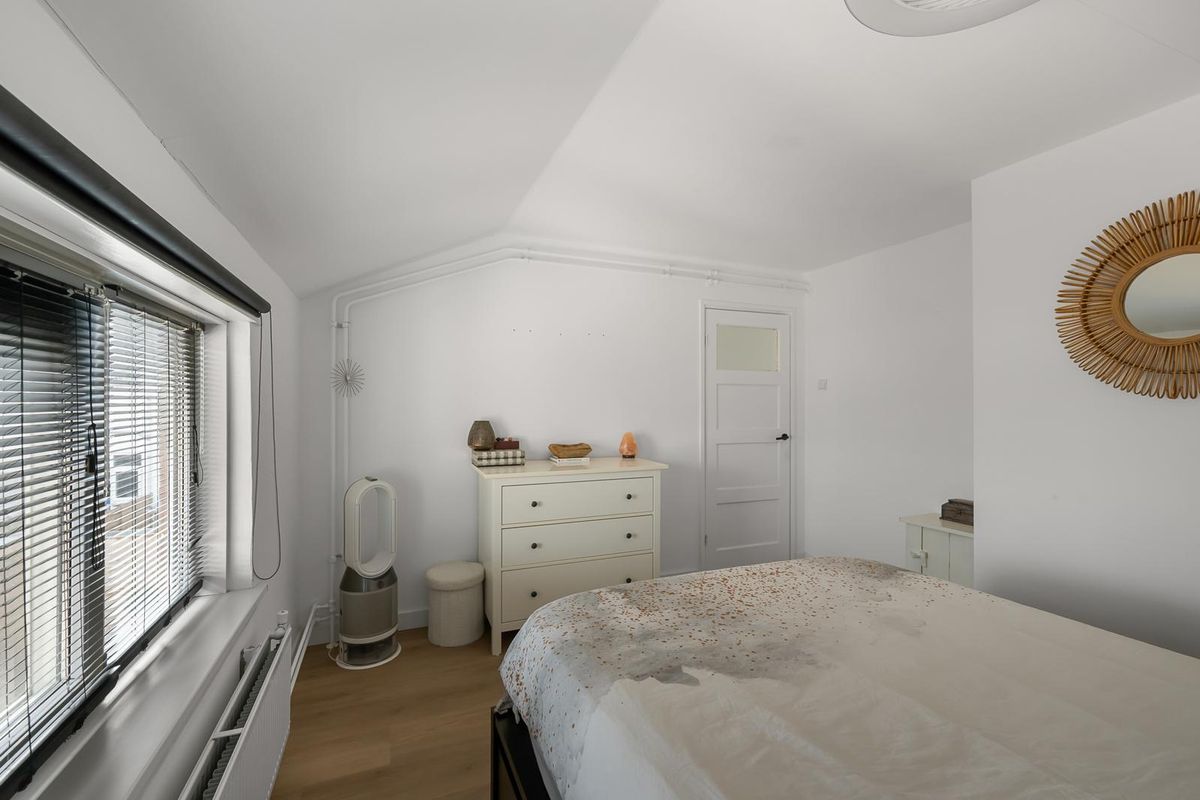 Op de eerste verdieping vind je drie slaapkamers, waarvan er één momenteel in gebruik is als wasruimte met opstelling voor de wasmachine, droger en de Intergas CV-ketel (2012). De badkamer is compact maar netjes, met een inloopdouche, wastafelmeubel (nieuw) en een raam voor daglicht en ventilatie. Boven is nog een ruime bergvliering bereikbaar via een vlizotrap.