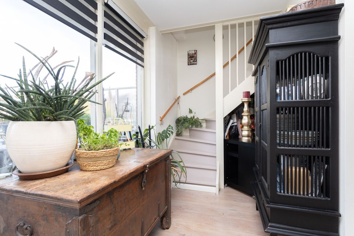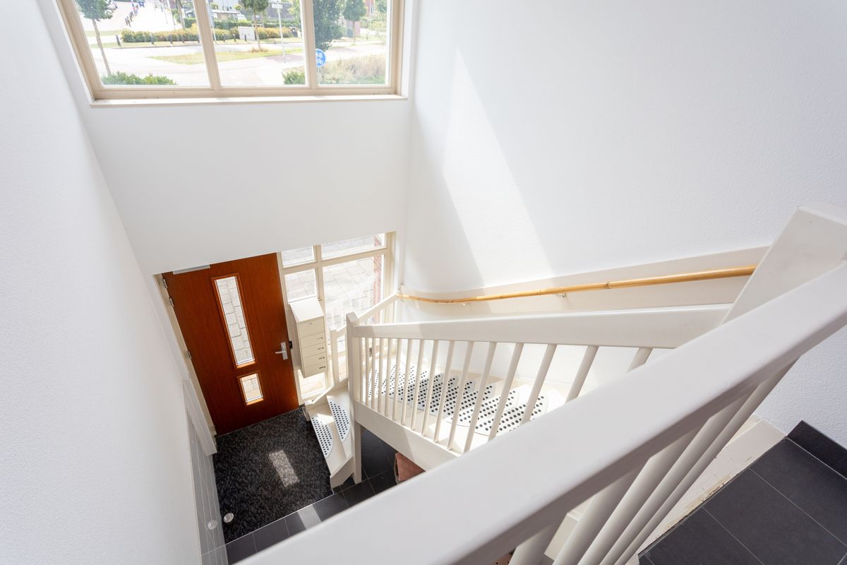 Afgesloten entree met trap naar de eerste verdieping waar de voordeur is.